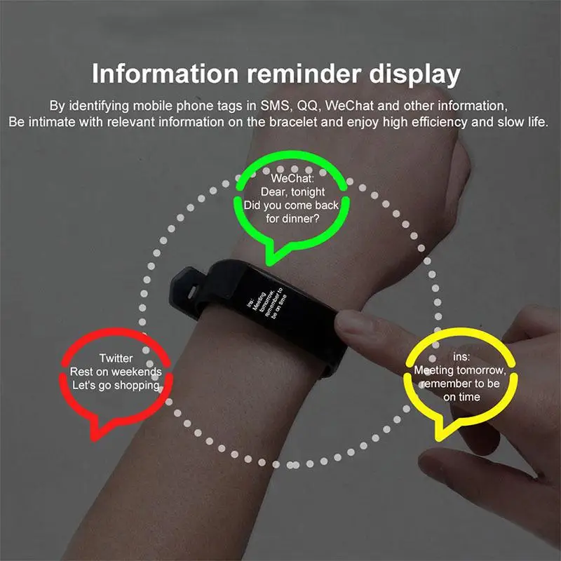 Smart Bracelet Heart Rate Monitoring Information Synchronization Reminder Bluetooth-compatible 4.0 Smart Watch Pedometer