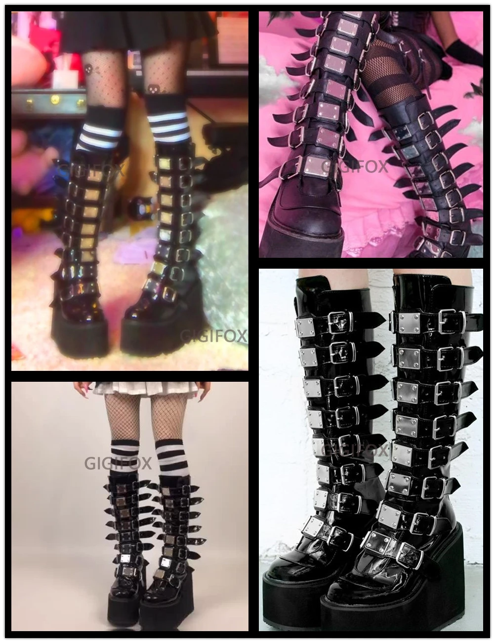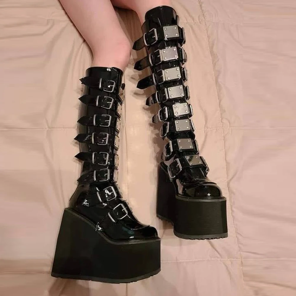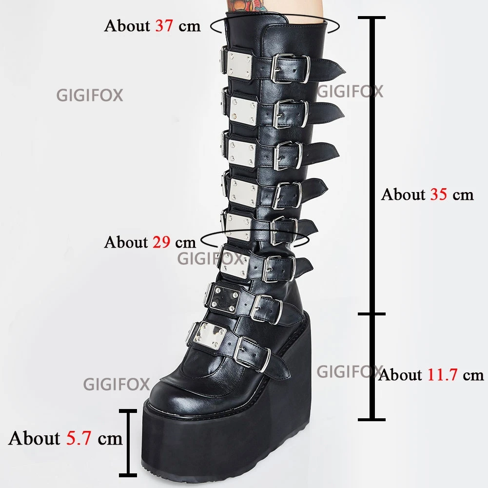 Brand Design Big Size 43 Black Gothic Style Cool Punk Motorcycles Boots Female Platform Wedges High Heels Calf Boots Women Shoes