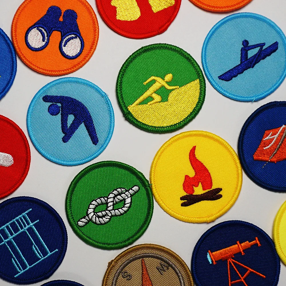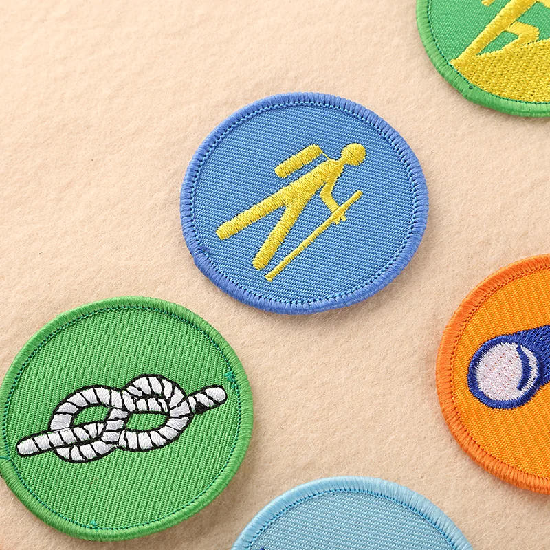 Cartoon round Boy Scout embroidered logo customized children's clothing accessories back glue patch Clothes Cute Patchs for DIY