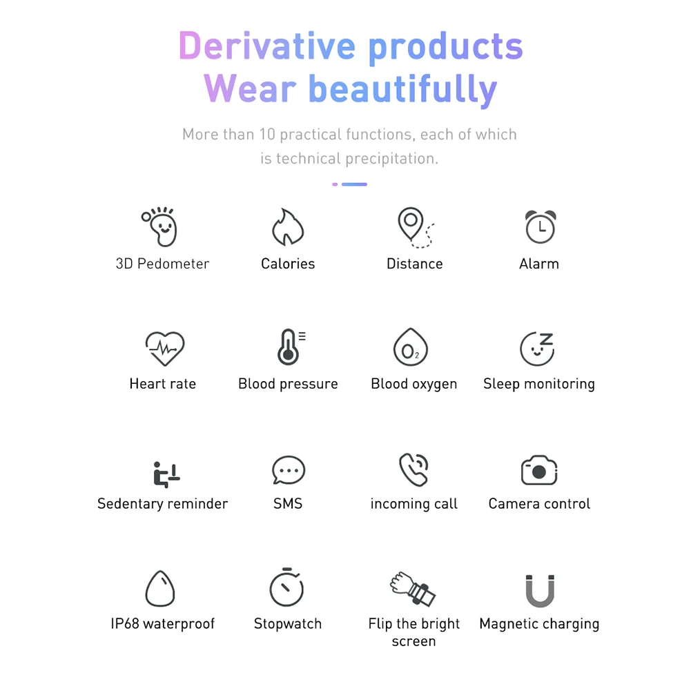 Other functions (customized watch change, call reminder, drinking water reminder, sedentary reminder, SMS reminder, women's health, alarm clock reminder, remote control camera, etc.)