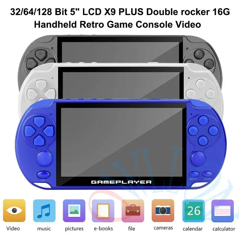 COOLBABY 32/64/128 Bit 5" LCD X9 plus Double rocker 16G Handheld Retro Game Console Video MP5 TF Card for GBA/NES 10000 games