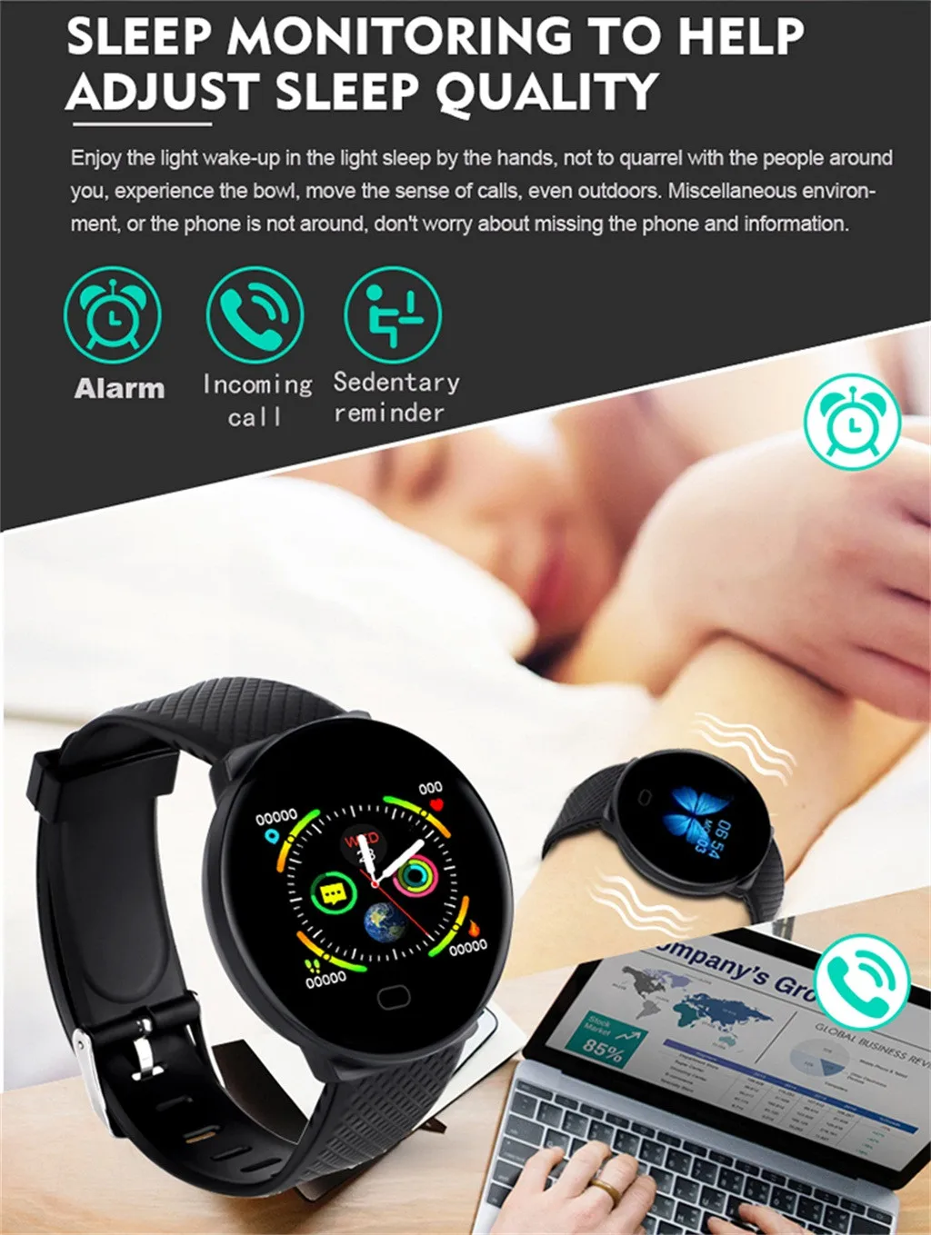 D19 BT4.0 Smart Watch Sleep Monitoring Fitness Tracker Waterproof Bracelet