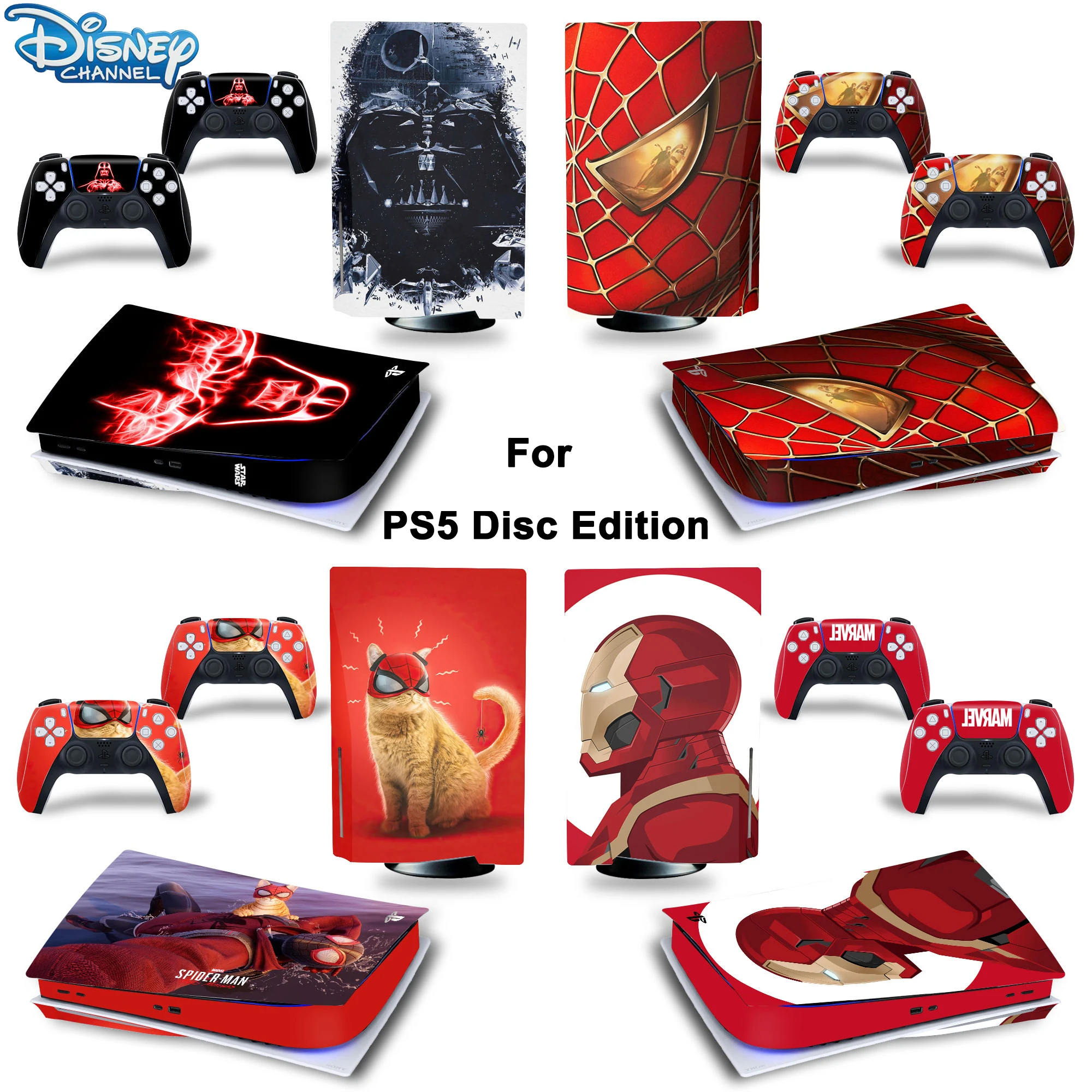 Darth Vader Iron Man PS5 Disk Skin Sticker Decal Cover for PlayStation 5 Console and 2 Controllers PS5 Disk Skin Sticker Vinyl