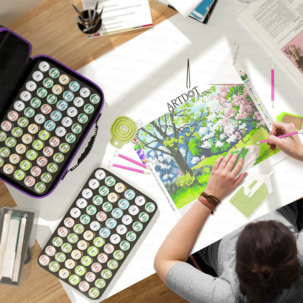 ARTDOT storage system features a large space for all your gem art & diamond painting tools, while remaining extremely portable & Perfect for getting diamond art done anywhere.