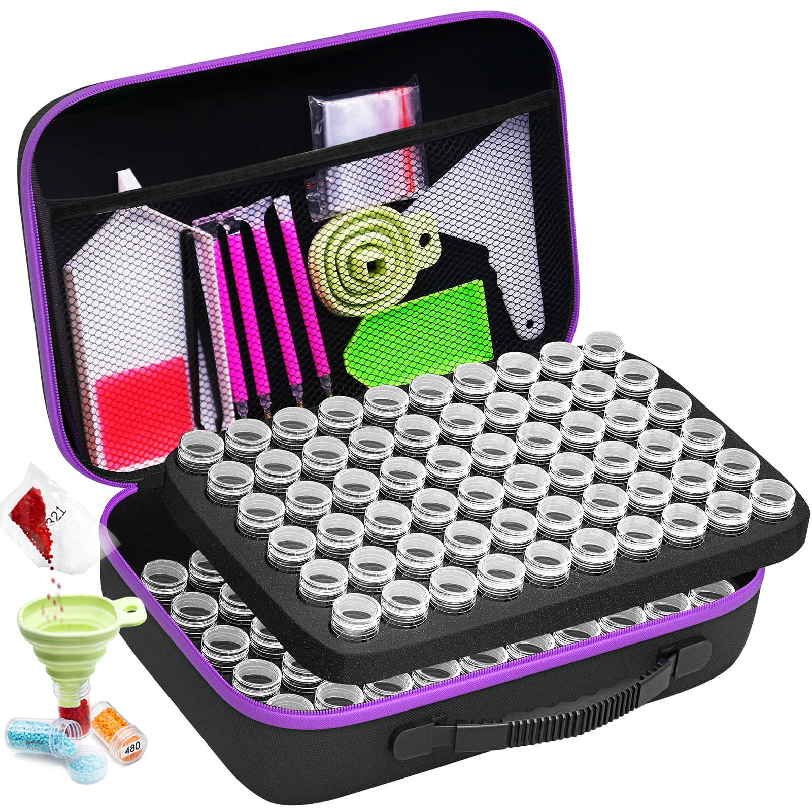 Each diamond paitning storage container stores approx 10 grams of object, you can turn each jar into bead organizer or store other little object such as jewelry, seed.