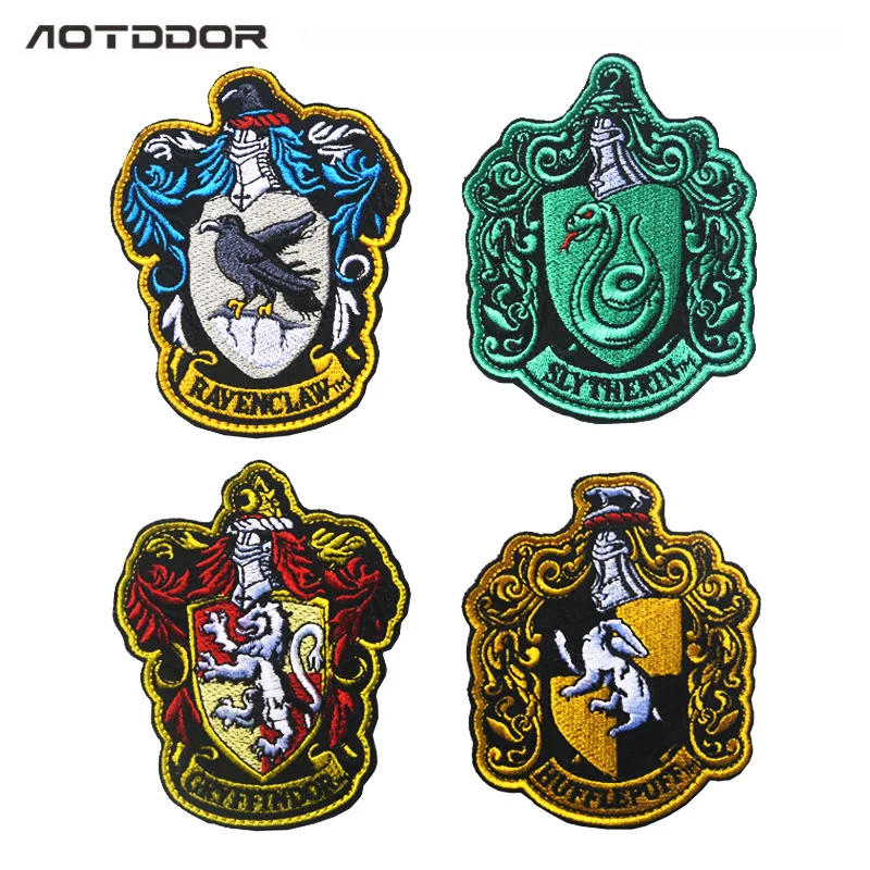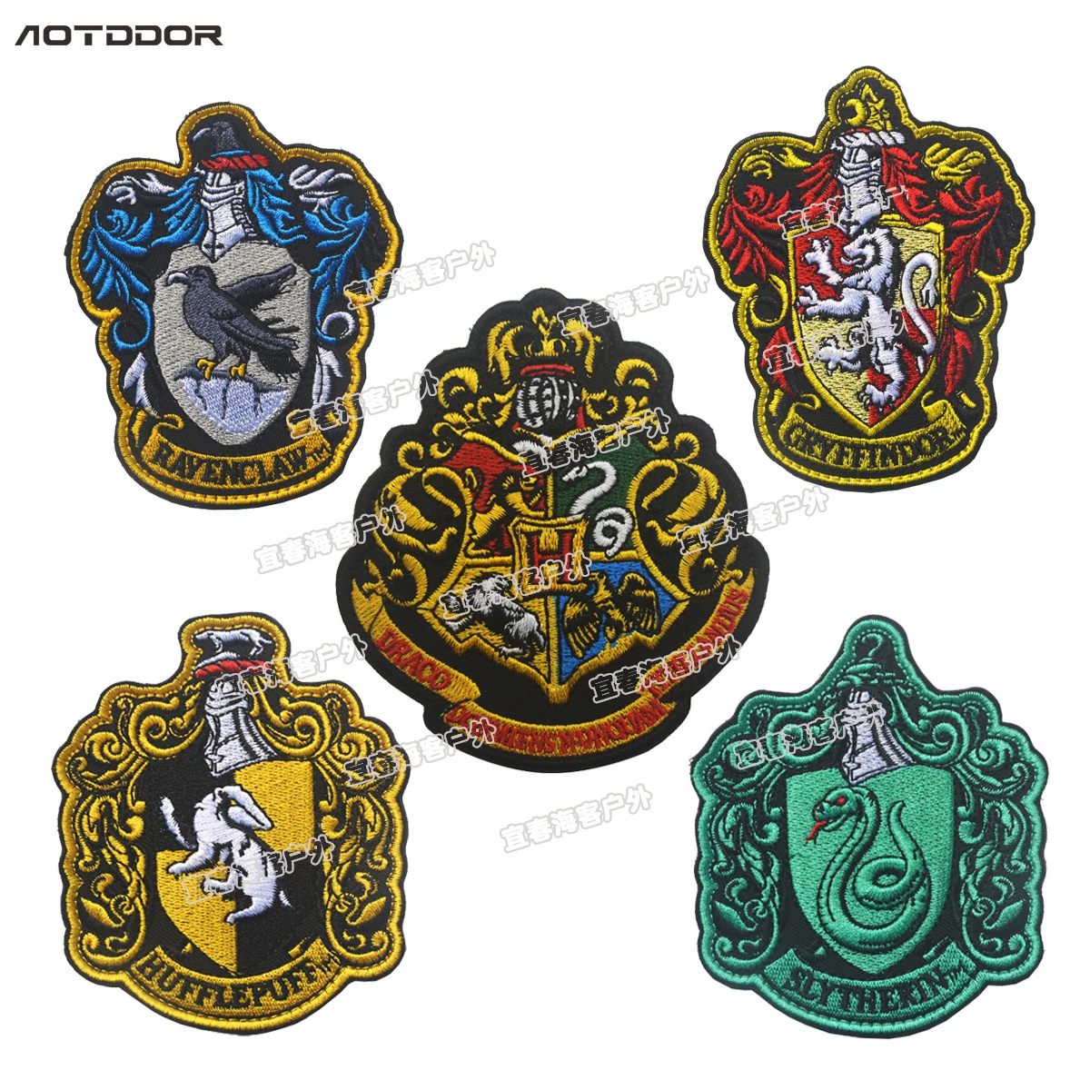 Embroidered Gryffindor Hufflepuff Ravenclaw Slytherin Crest Logo  Patches Hook Back Morale  Military Badge Fastener