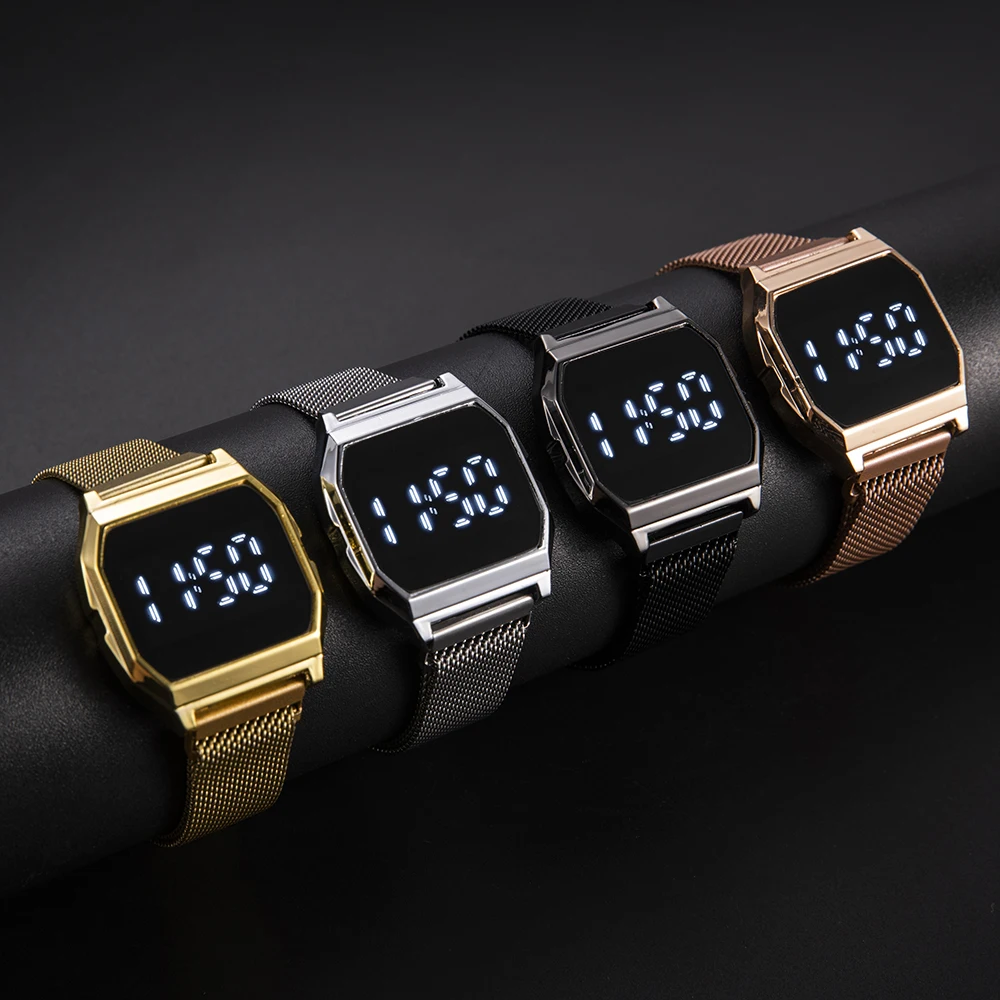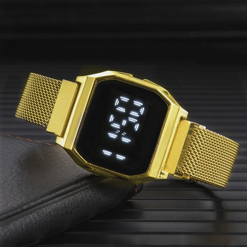Fashion Sport Watch Luxury Brand Gold Women Watches Stainless Steel Magnetic Strap Digital Watch For Men Women reloj hombre