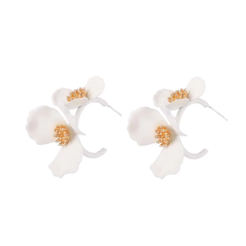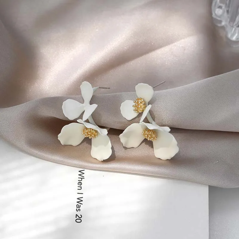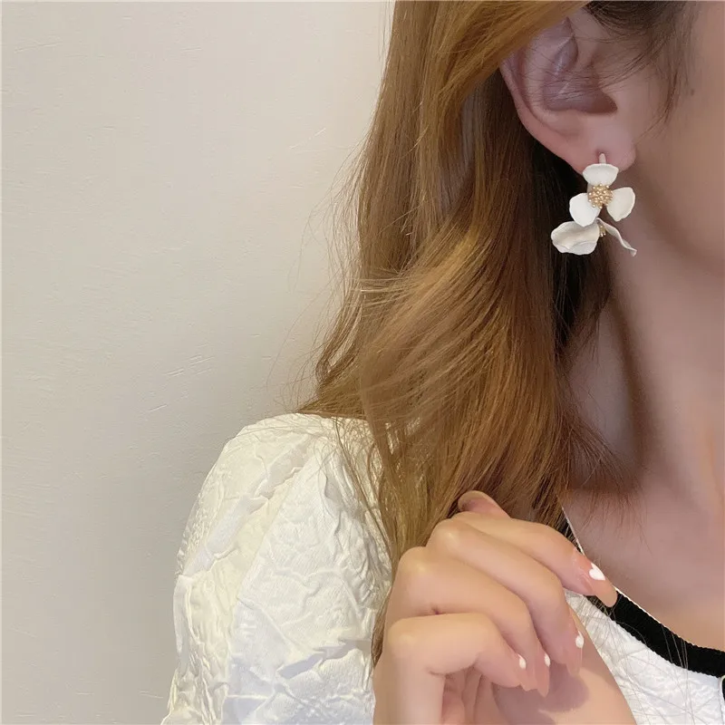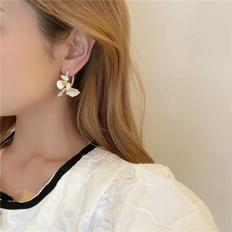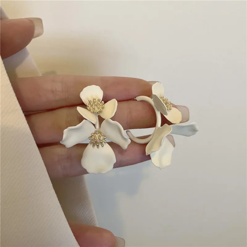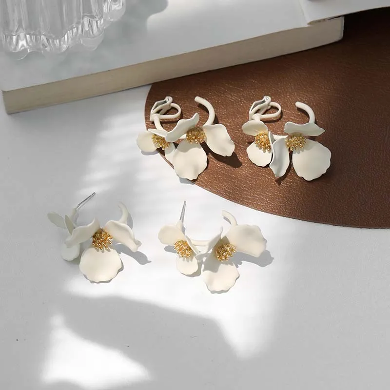 Fashion Summer Super Fairy Flower Clip on Earrings Simple White Camellia Flower Ear Clip earrings Without Piercing Ear Holes