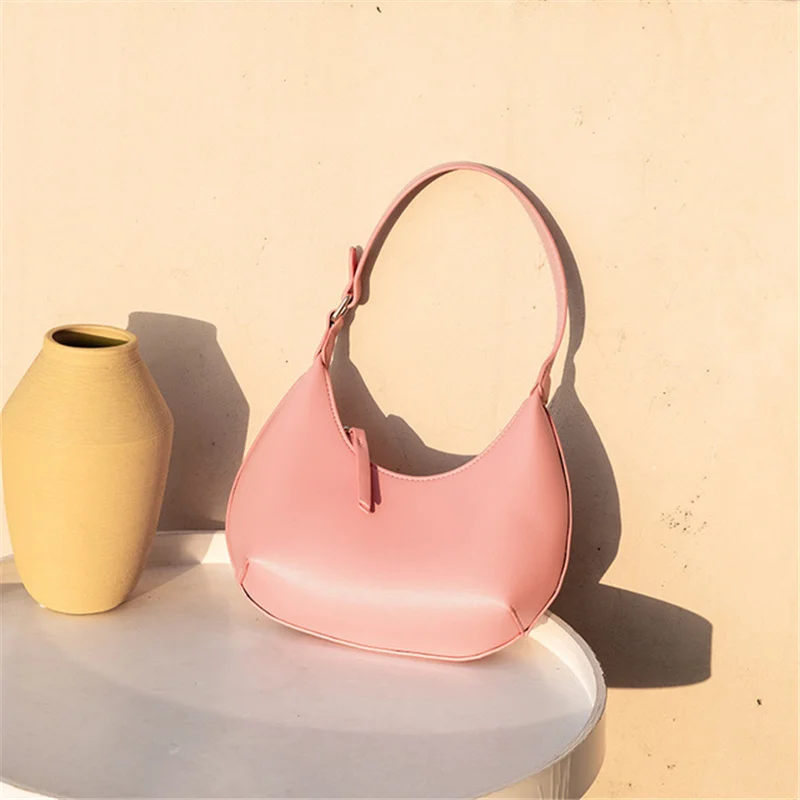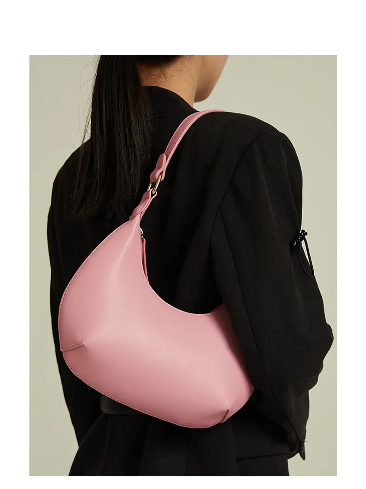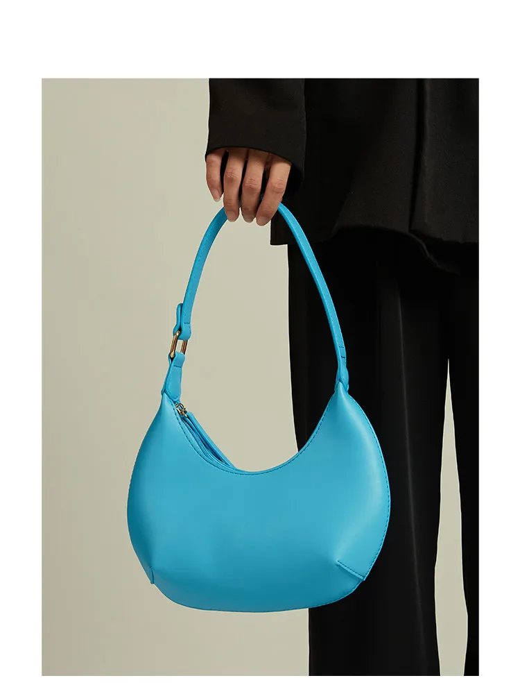 FIRMRANCH Woman's Stylish Solid Color Half Moon Design Sweet Macaron High Quality Daily Date Casual Shoulder Orange Armpit Bag