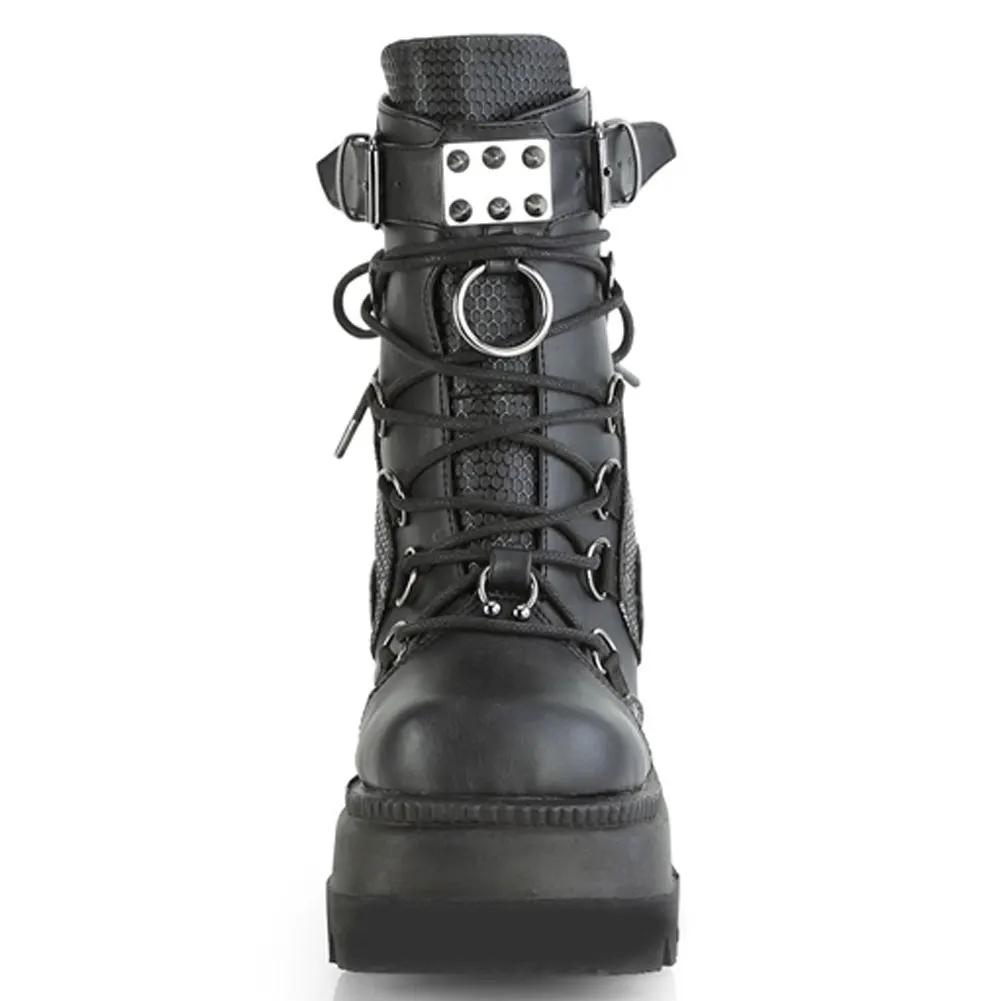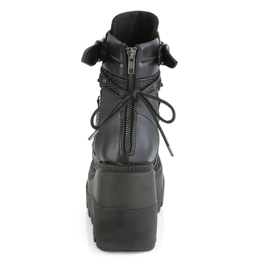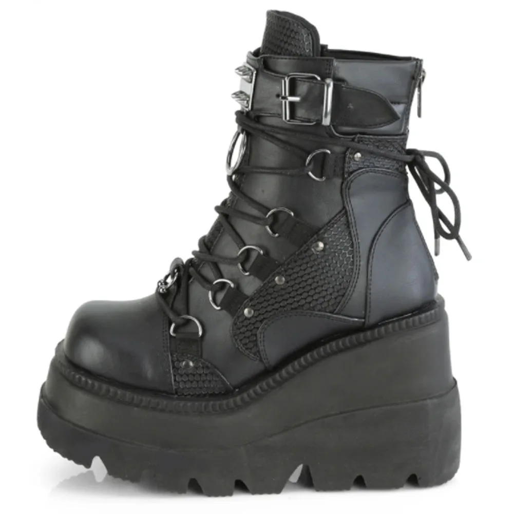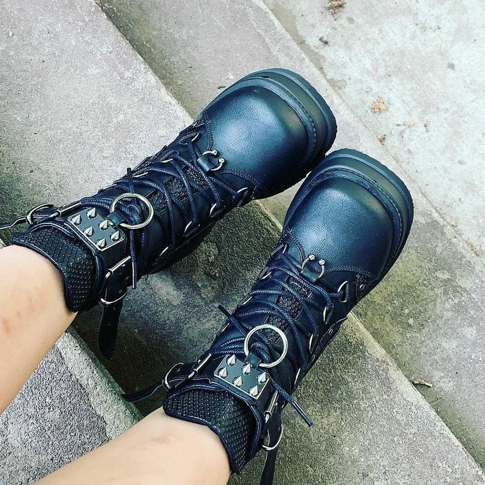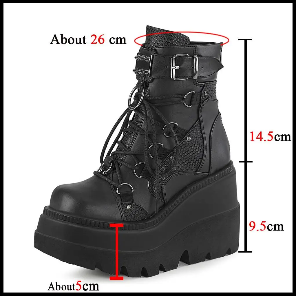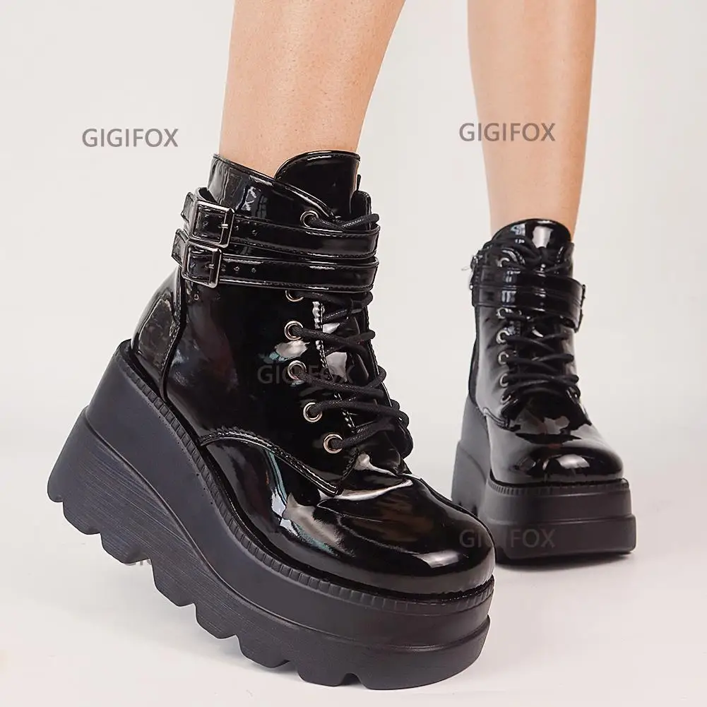 GIGIFOX Brand Fashion Gothic Big Size 43 High Heels Black Back Zipper Ankle Platform Boots Street Cool Woman Wedges Shoes