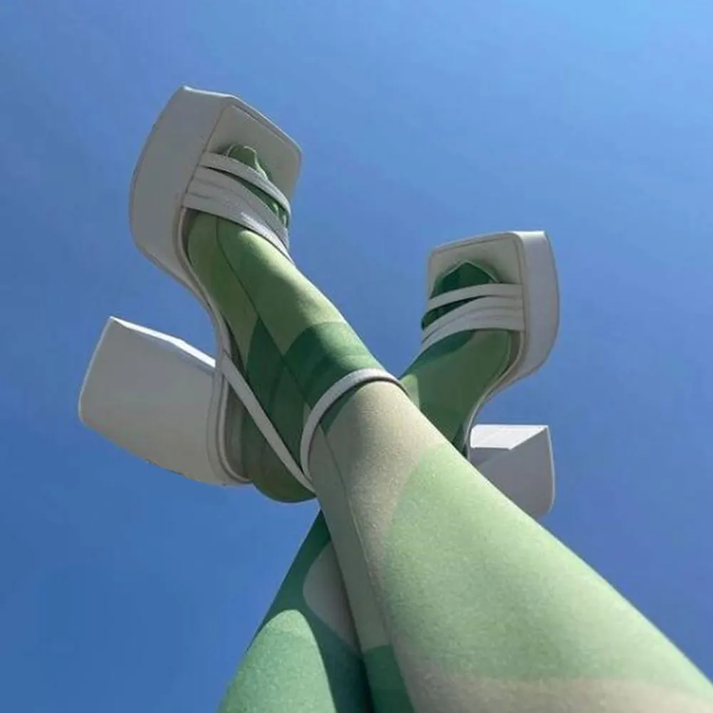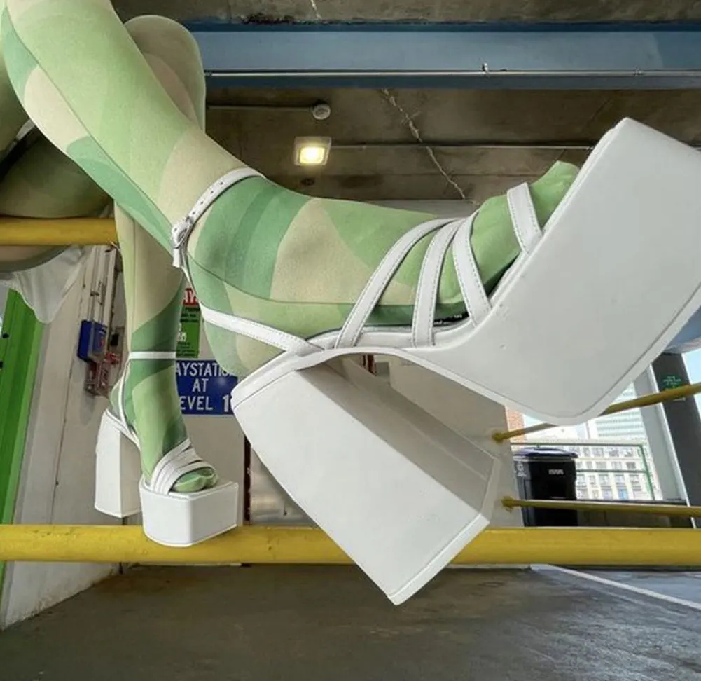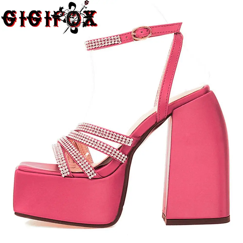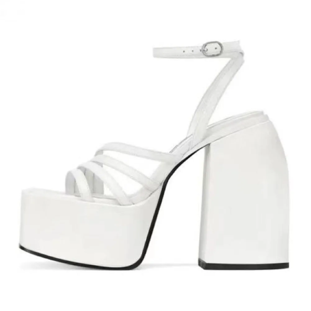 GIGIFOX Brand New 2022 Big Size 43 Summer White Goth High Heels Sexy Party Chunky Platform Sandals Shoes Women
