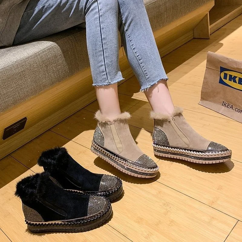 Hairy shoes women's outer wear winter 2021 new thick-soled rhinestone high-top lazy fashion boots women velvet woman boots Wool