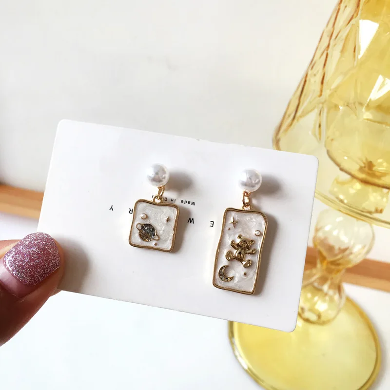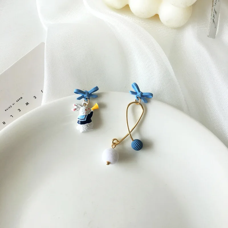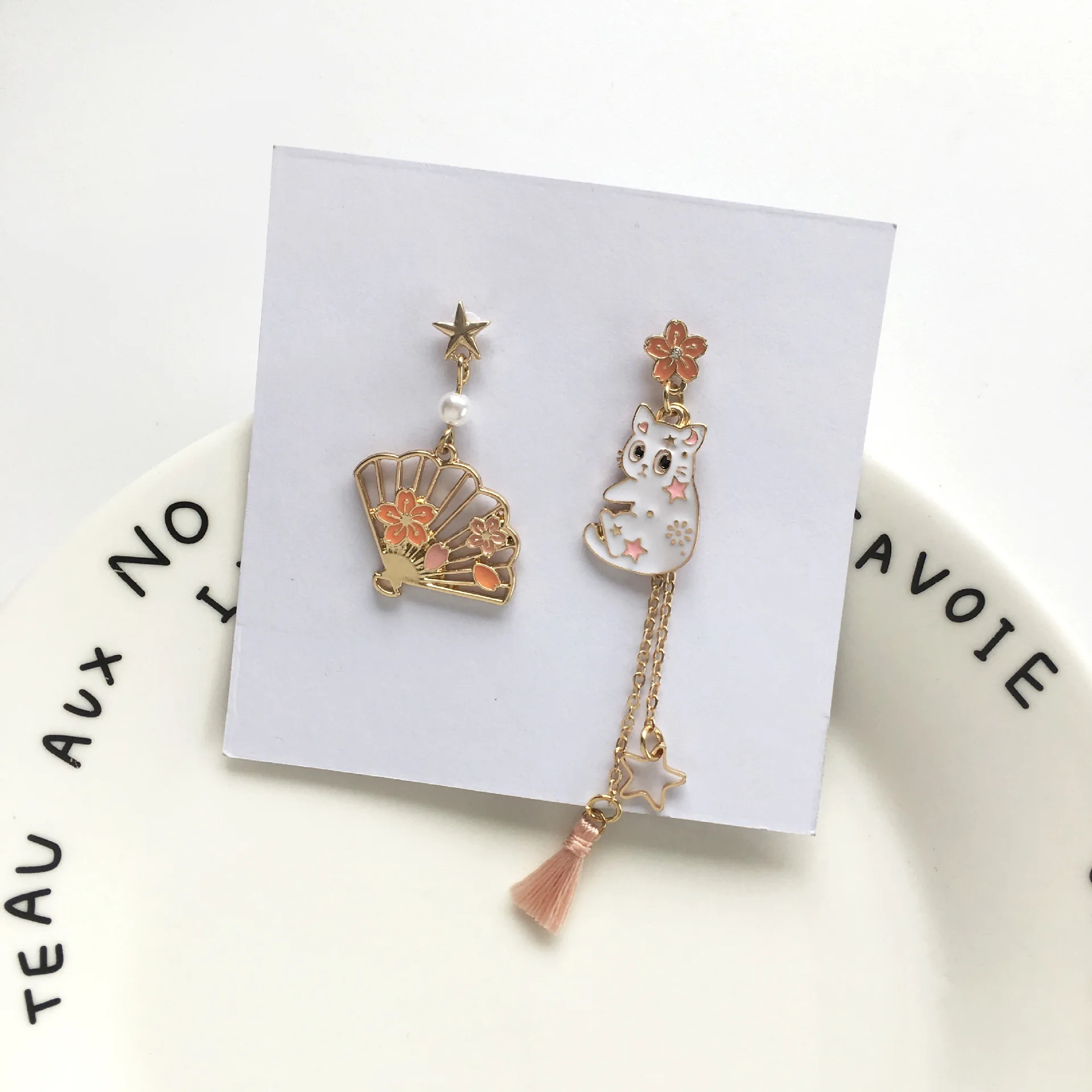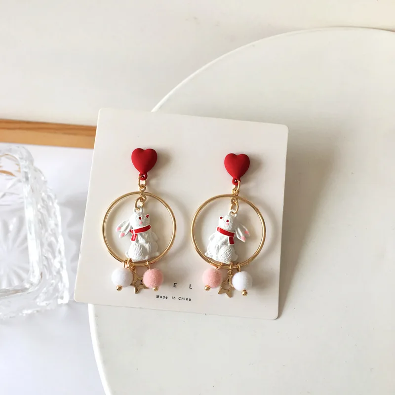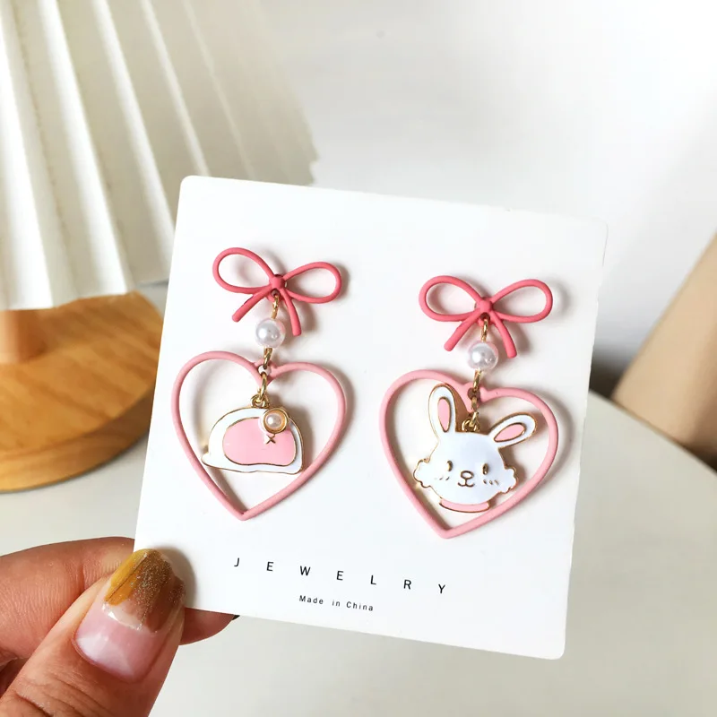 Japanese Cute Cartton Animal  White Rabbit Bear Clip on Earrings Pink Sakura Cat Clip Earrings Without Piercing for Women Girls
