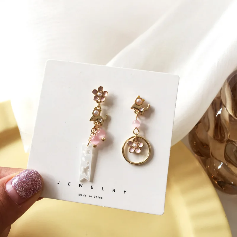 Japanese Cute Cartton Animal White Rabbit Bear Clip on Earrings Pink Sakura Cat Clip Earrings Without Piercing for Women Girls