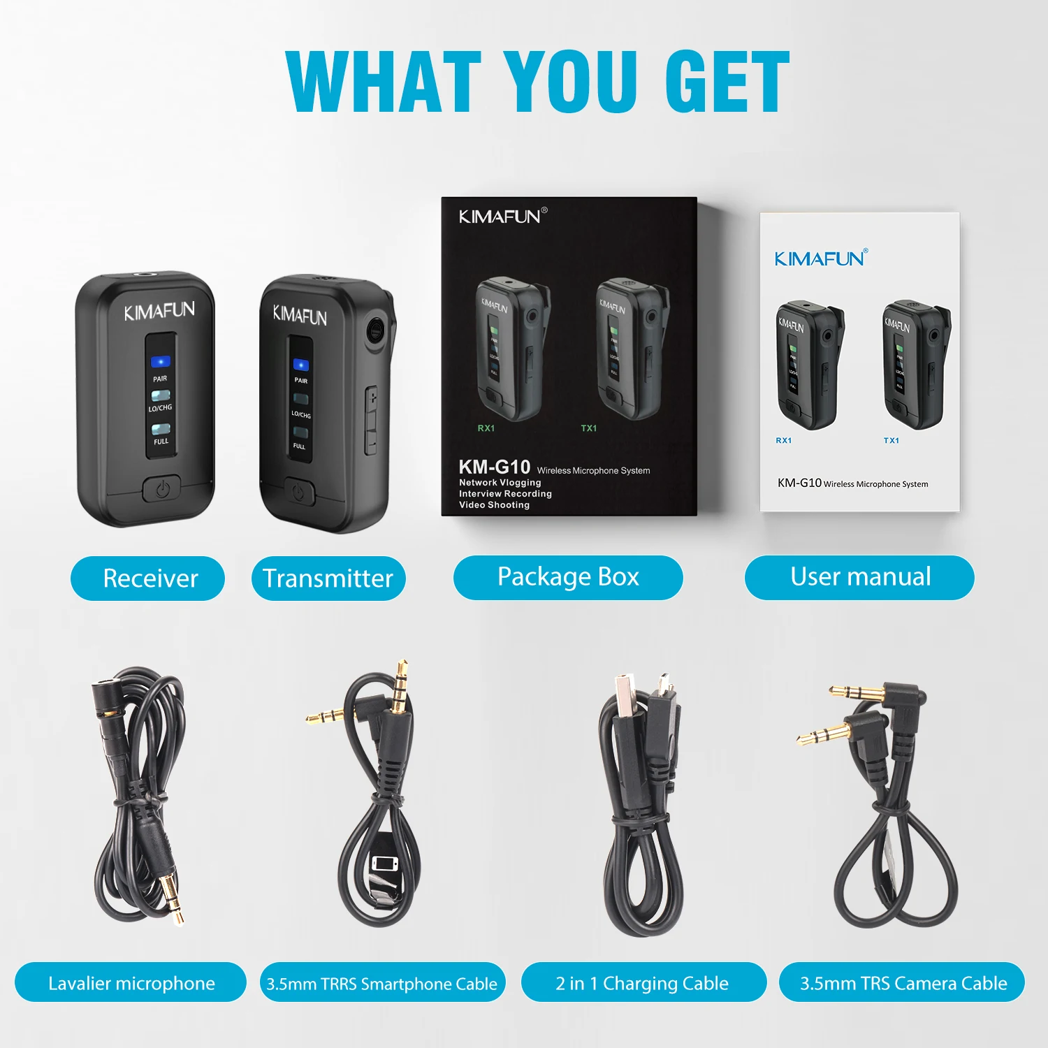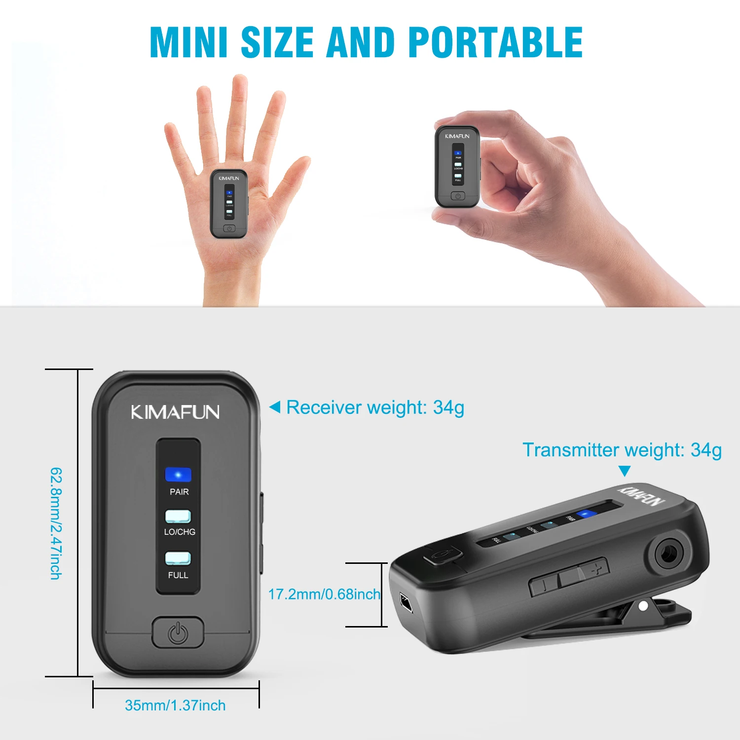 ★ LIGHTWEIGHT AND PORTABLE-- The weight of a single transmitter/receiver is only 34g, which is small and sturdy. The transmitter has a built-in microphone and back clip, you can easily clip it to the collar for use. A external lavalier microphone is also included in the package, so this system can be used as a lavalier wireless microphone system. The videographer can monitor the sound transmitted by the transmitter in real time through the monitor headphone jack on the receiver.