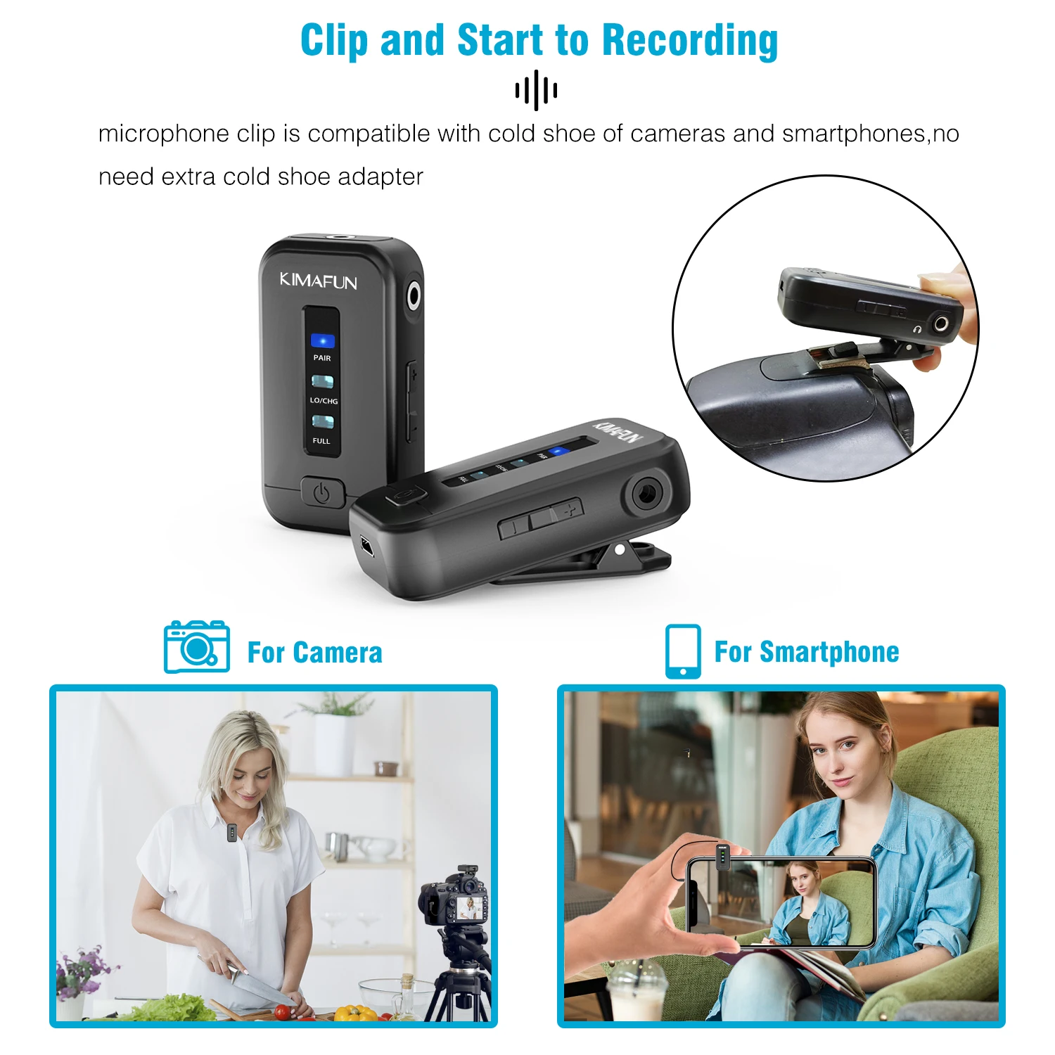 -- Click the button '+' and '-' on the receiver to quickly increase and reduce the volume. The back clip of the transmitter/receiver has a cold shoe suitable for cameras and smartphone holders, designed for recording video and audio. You can also use it to record Tik Tok, record vlog, record Youtube video, live broadcasts on Facebook/YouTube, interview, etc.