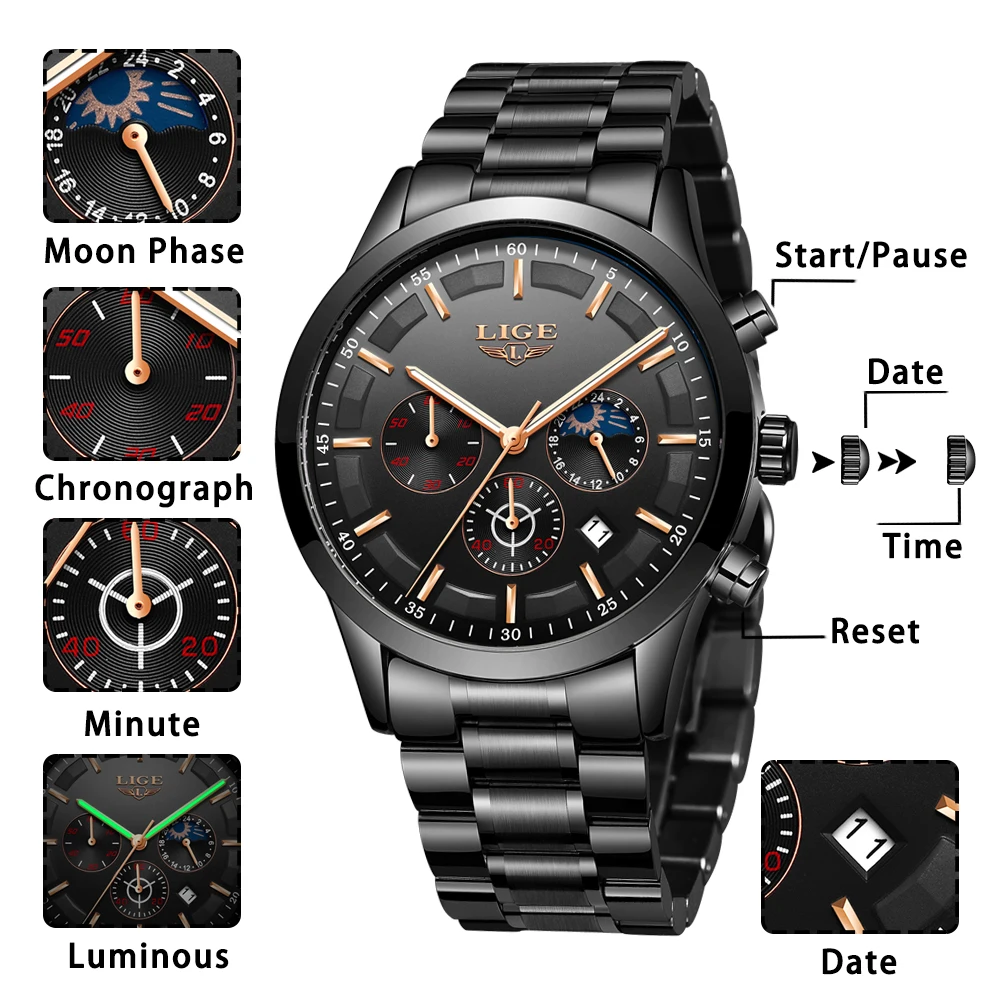Watch with After-sale service :After the purchase of LIGE watch has 60 days full refund and 24month service, Please don’t hesitate to contact us if you any problem about our watches , it will be our pleasure to solve your problem.