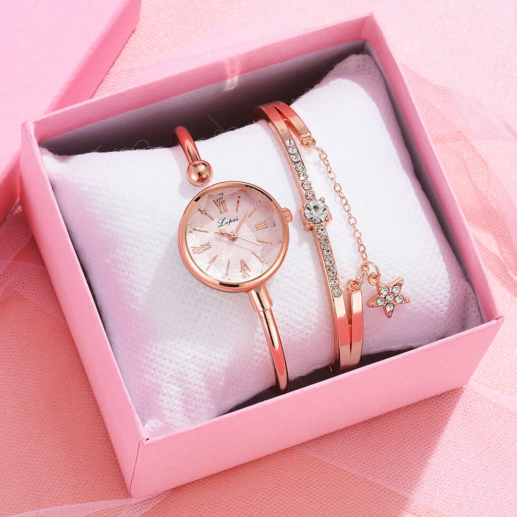 Lvpai Brand Watch For Women Dress Fashion Diamond Bracelet Watches Set Simple Roman Numeral Dial Ladies Clock Relogio Feminino