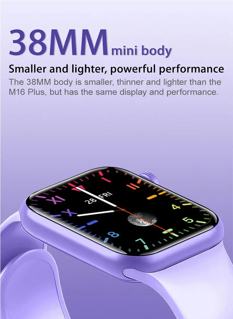 M16 Mini 38mm Wristwatch Men Women Smart Fitness Bracelet Smart Watch Electronic Clock Bluetooth Call Sleep Monitor Smartwatch