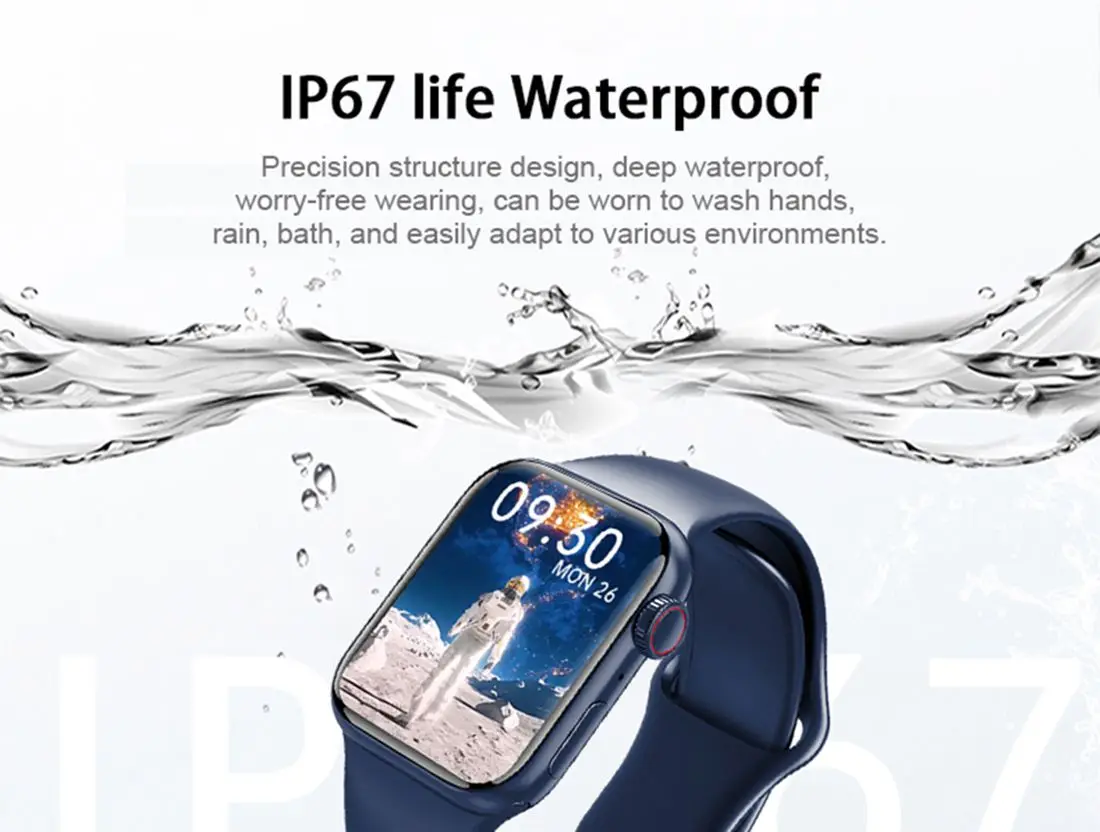 IP67 life waterproof, please do not bring your watch to swimming, diving, bathing and sauna!