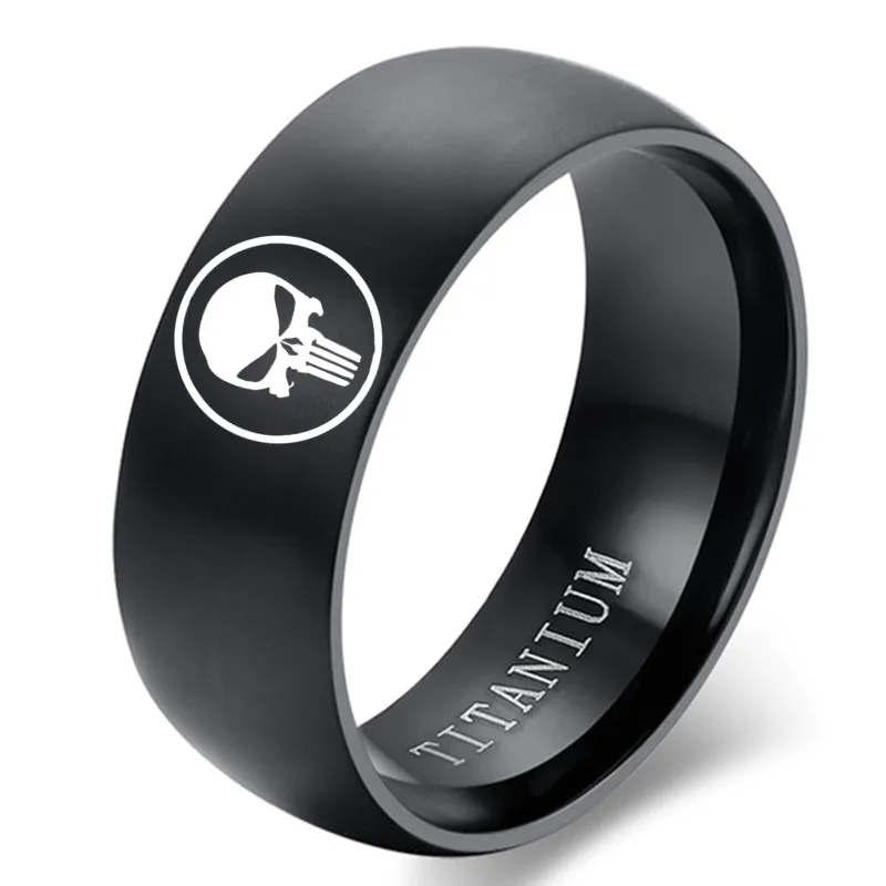 Brand Jewelry Titanium Steel Super Hero Skull Punisher Ring Sliver Color Engraved Skeleton Logo Ring Party Gift
