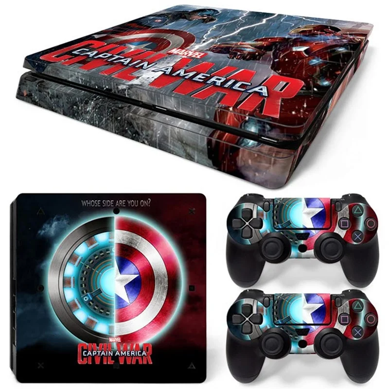 Marvel Captain America Vinyl Skin Sticker for PS4 Slim Console and 2 Controllers Decal Cover Game Accessories