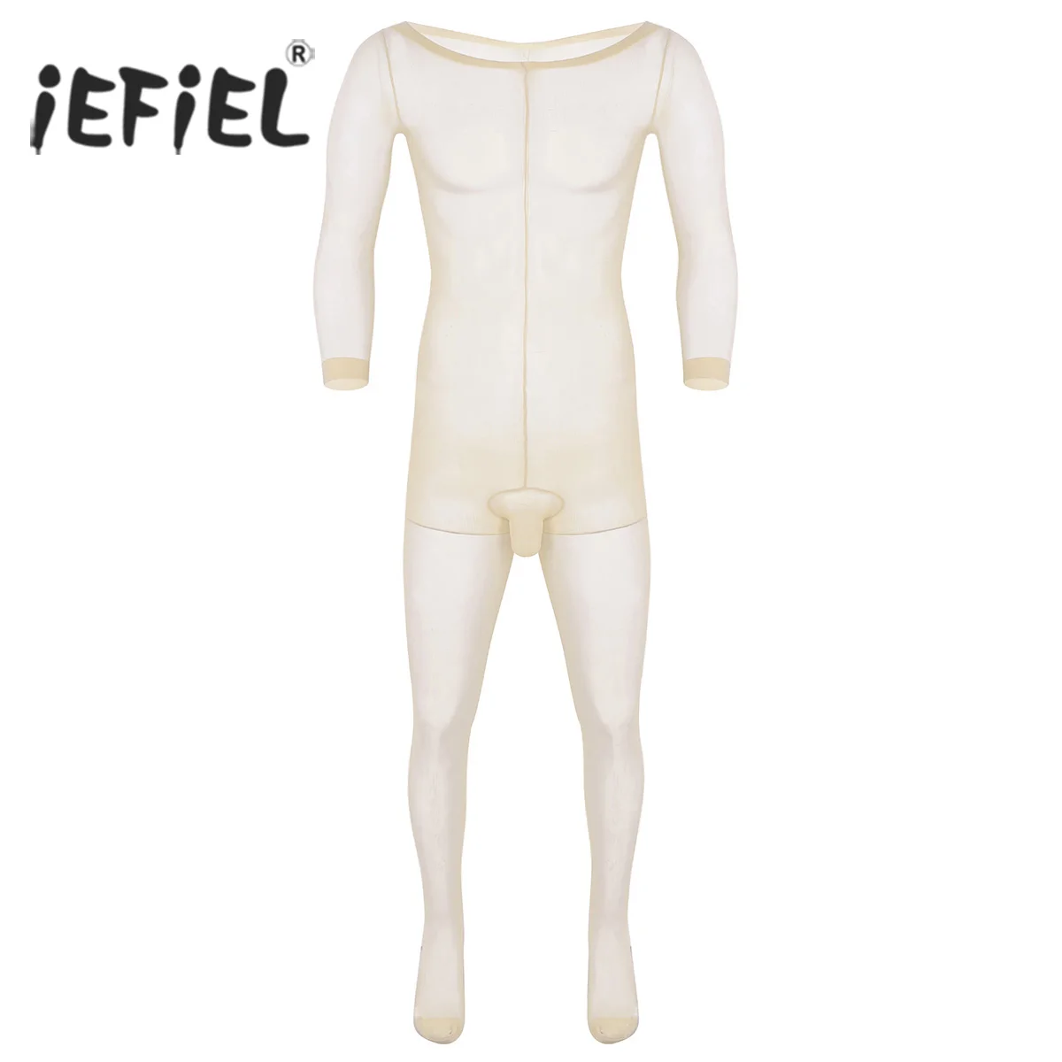 Mens Adult Skinny Stretchy Stocking See-through Gay Sexy Closed Penis Sheath Design Full Body Closed Toe Ultra-thin Pantyhose