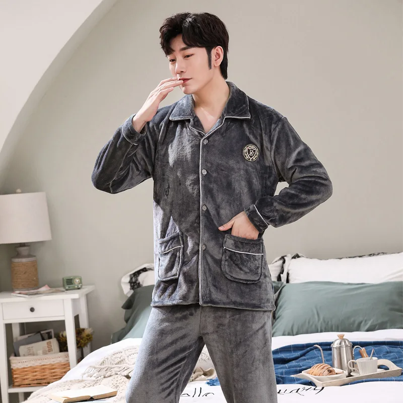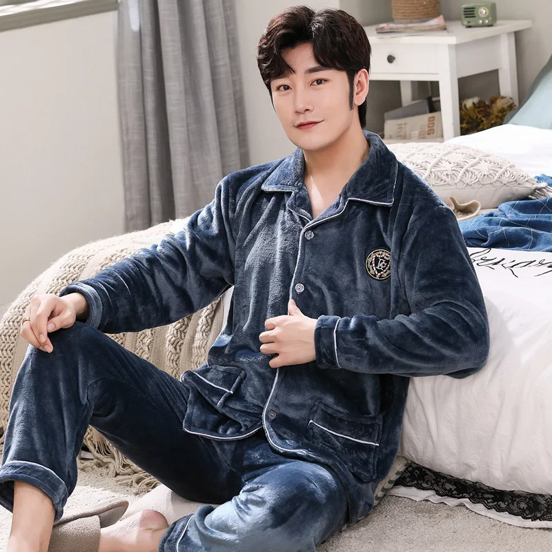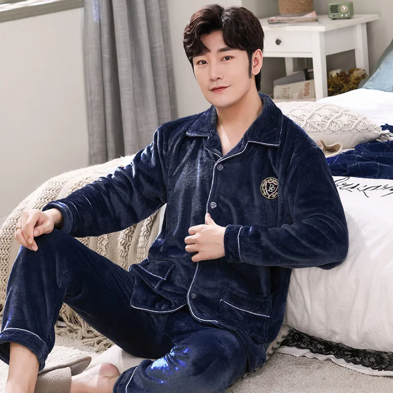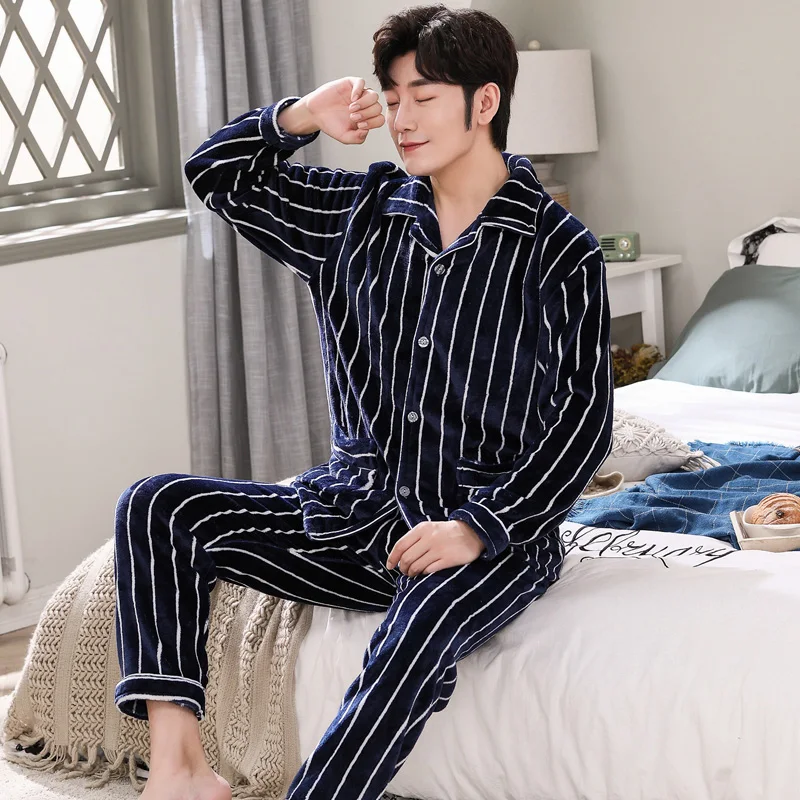 mens sleepwear set Winter Flannel Men's Winter Pajamas 2 Pcs Set Long Sleeved Thickened Sleepwear 6XL Large 5XL Fleece Pajama Man Flannel Home Suit mens cotton pajama bottoms