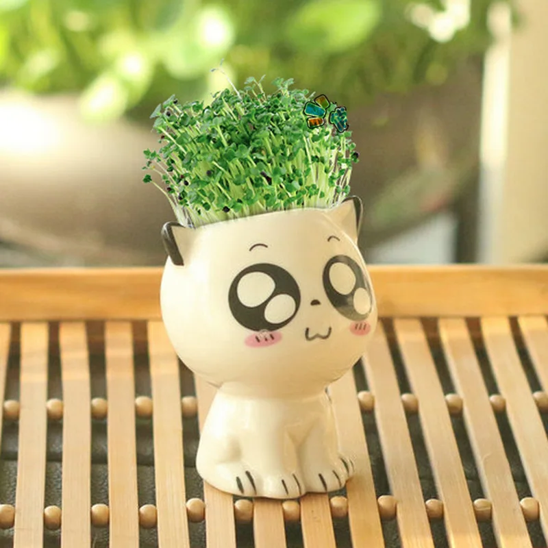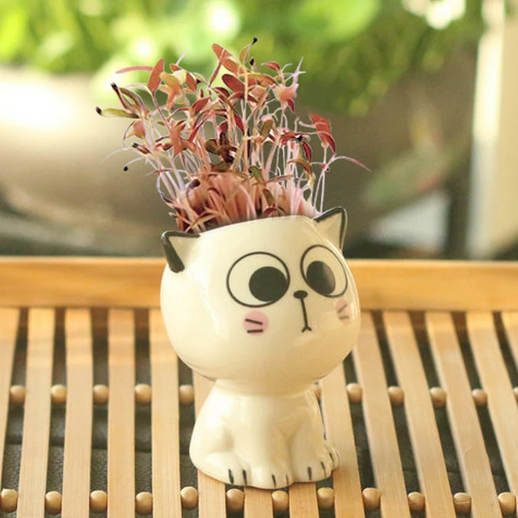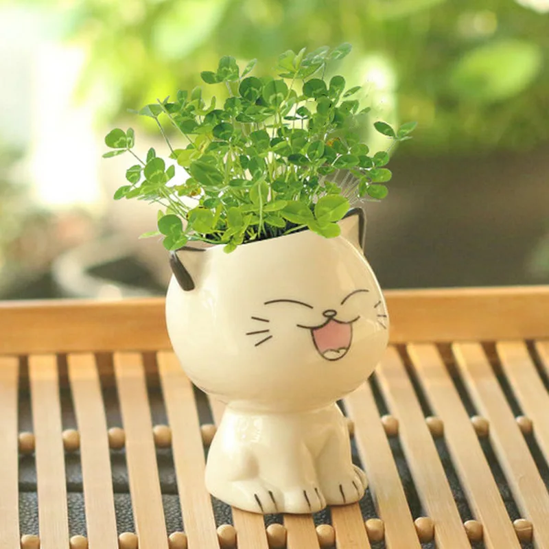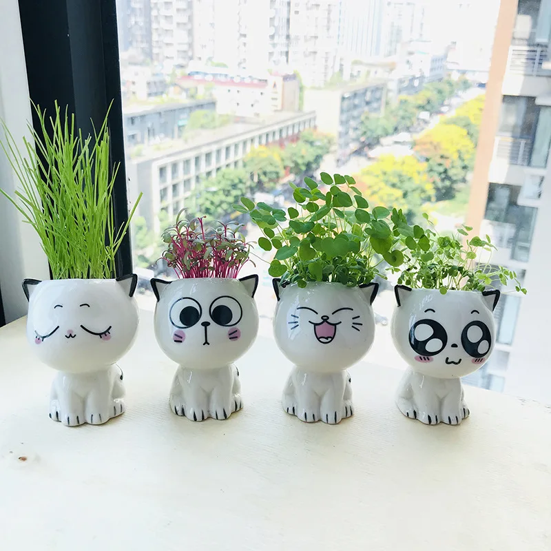 Mini Cat Shaped Ceramic Flowerpot Cartoon Cute Hand Desktop Potted Desk Decorate Small Ornaments Plants Flower Pot Home Decor