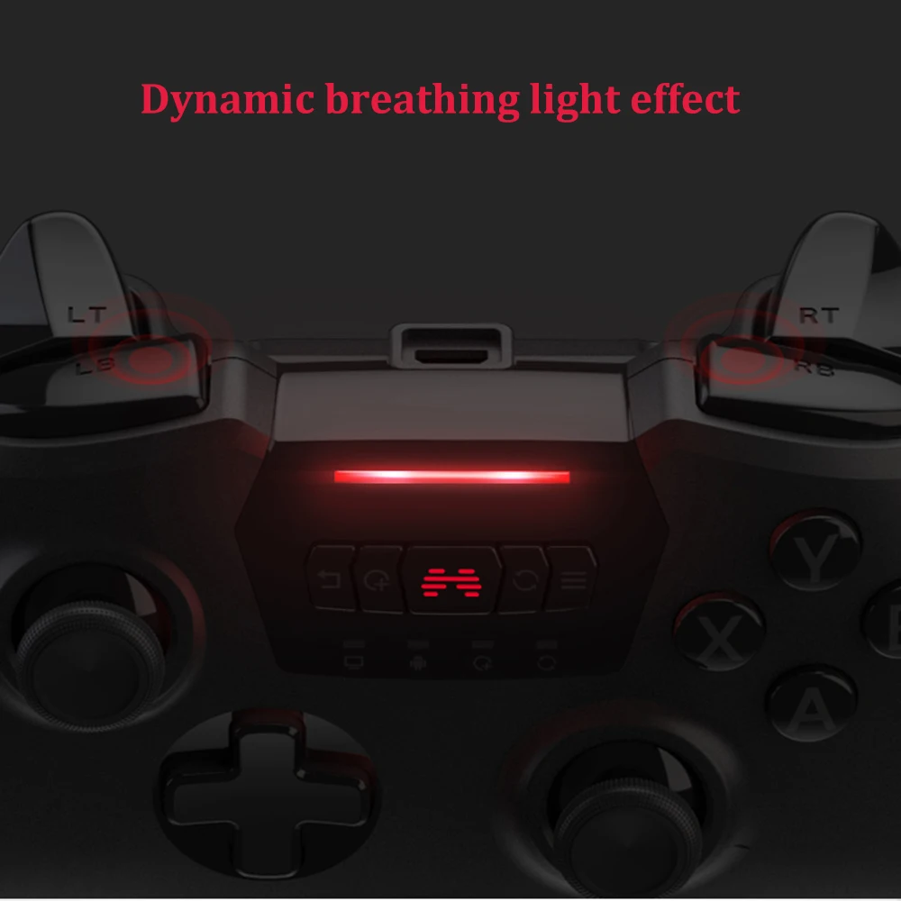 8. Dynamic breathing light effect: The dazzling light bar can be triggered by the LB and RB keys to flash, with 3 modes of off, long light, and breathing flashing.