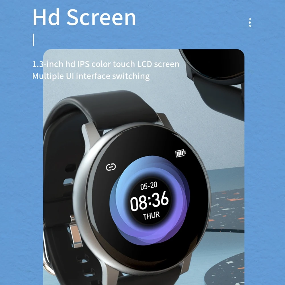 The smart watch has functions of blood pressure monitor, call reminder, fitness tracker and sedantary reminder, etc.