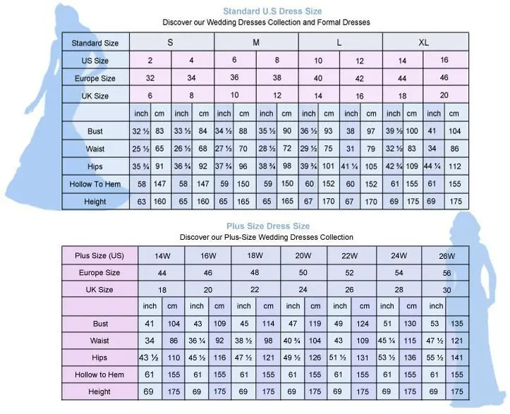 Dear friends:In order to make your dress fit on you perfect and make you more satisfied ,we do not suggest you order a standard size ,so please leave us your exact measurements ,we are glad to custom made size or color for you for free(under US size18) !When you place your order , just leave your measurements and requirements into message box is ok ,we will according your requirements to custom made your dress for you .Or If you need any help ,please fell free to contact with me ,it will my pleasure to hear from you , Thank you !We need your Bust Size :___ Waist size:__ Hips size :___ From your shoulder to floor: ___ Your Height:____