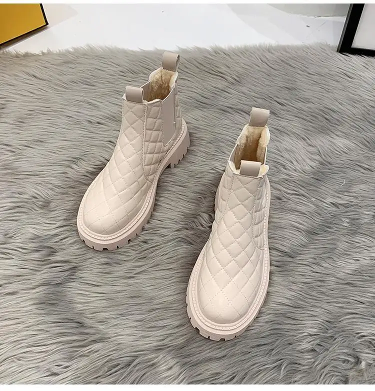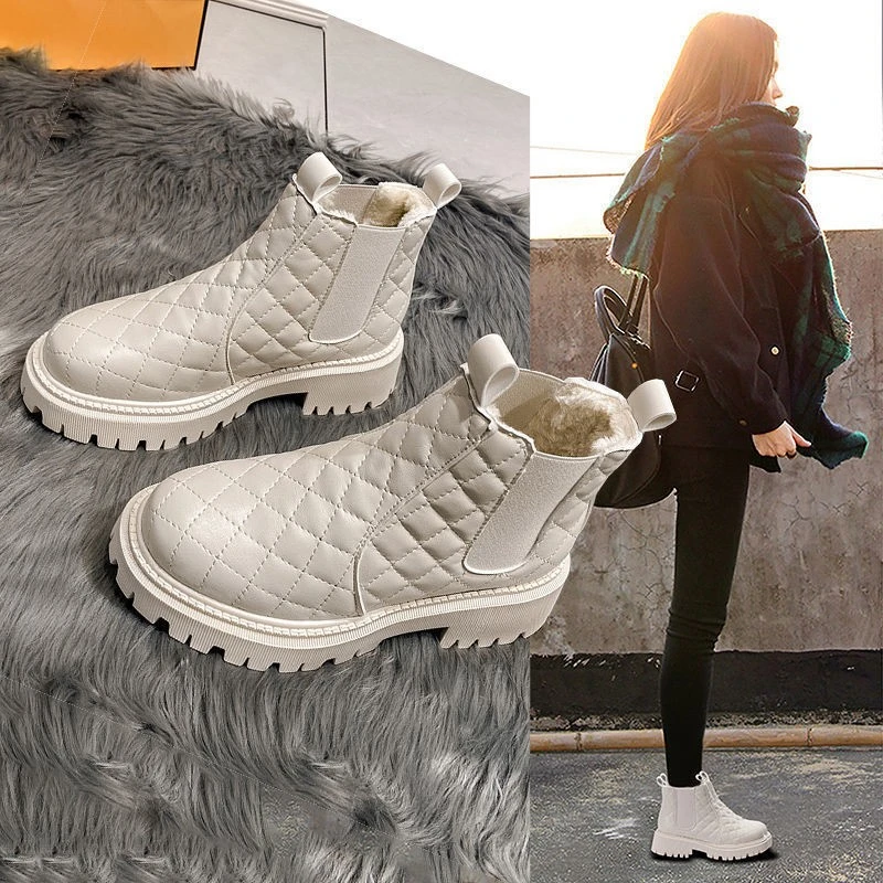 Shoes Woman  Boots Non-Slip Snow Boots Women Raise The Bottom Warm with Velvet Short Lattice Luxury Designer Beige Black