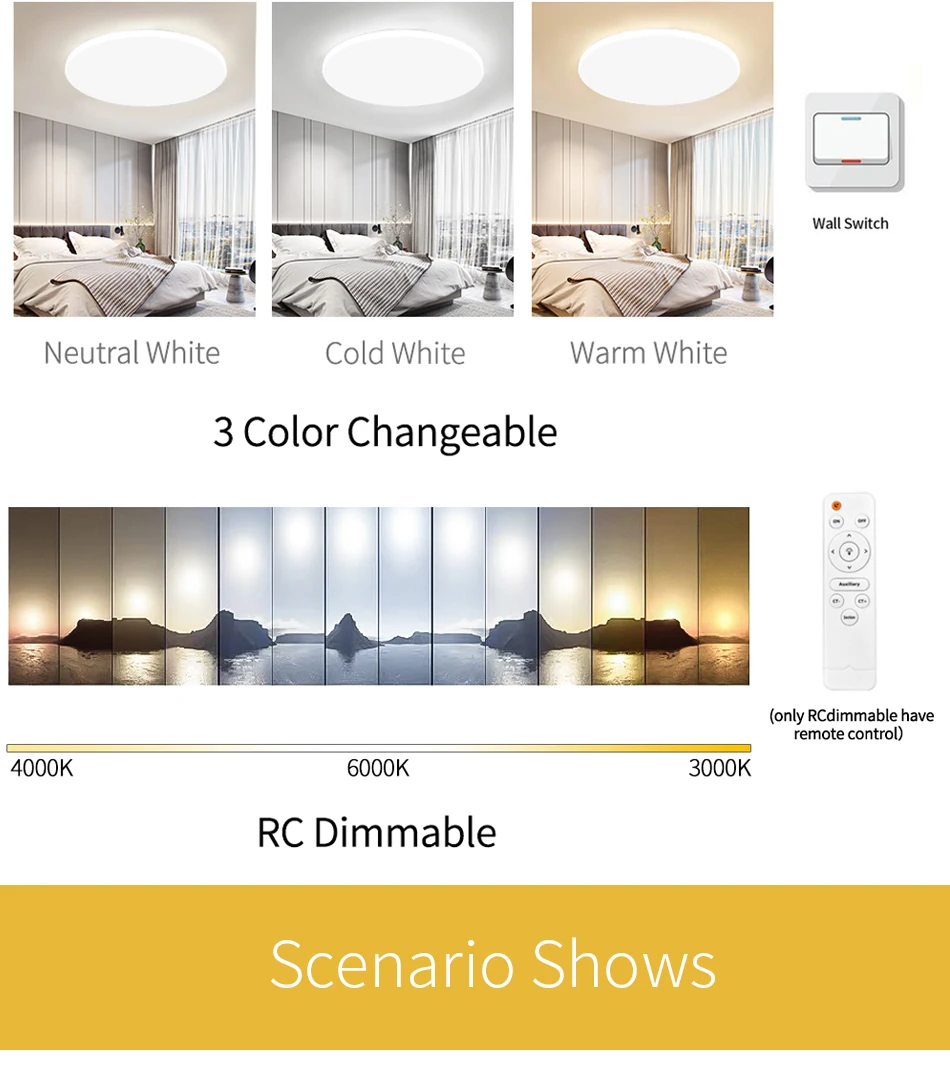 Meanwhile, you can turn on/off the wall switch to change between three kinds of color temperature,Warm-white,Neutral-whiteandCold-white.simply.