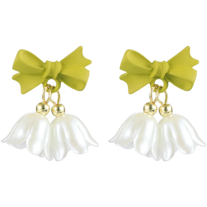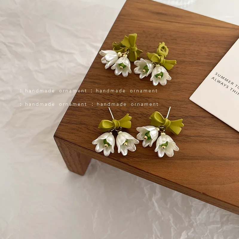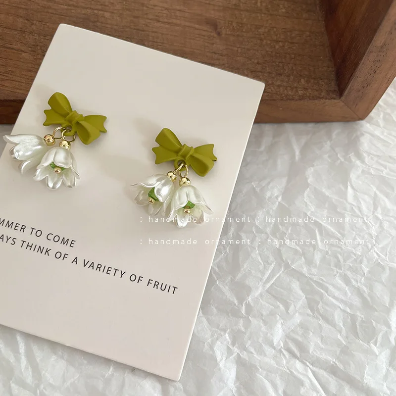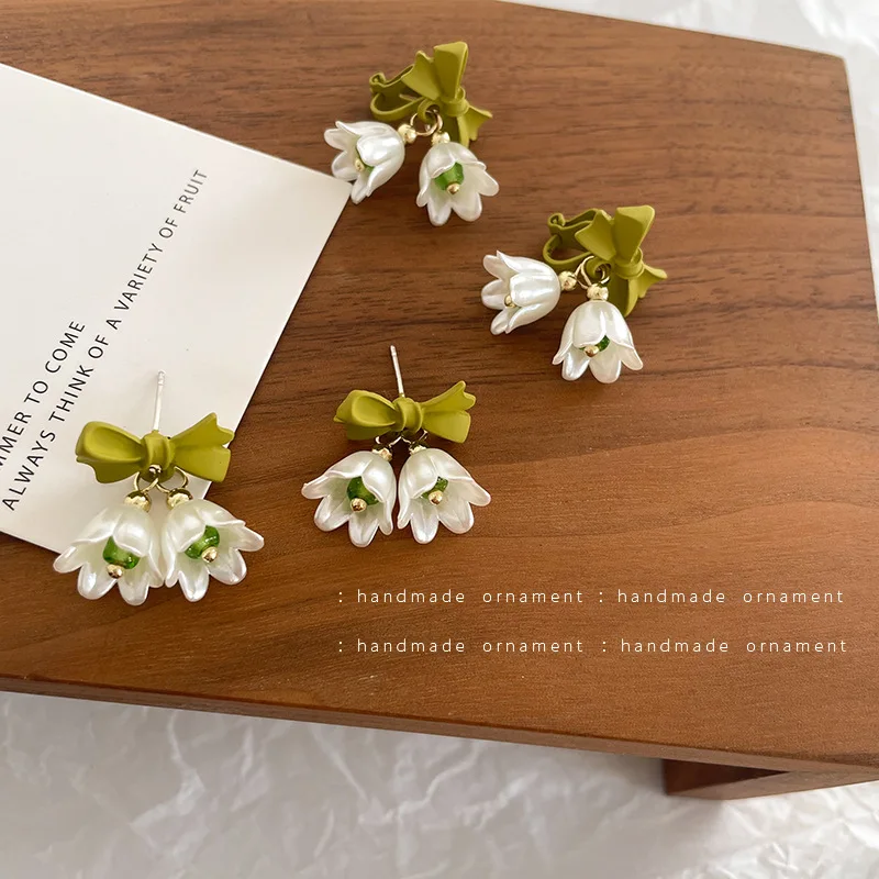Spring Green Korean Small White Tulip Earrings Ear Clips Ins Simple Minority Shell Flower Clip on Earrings for Women No Piercing