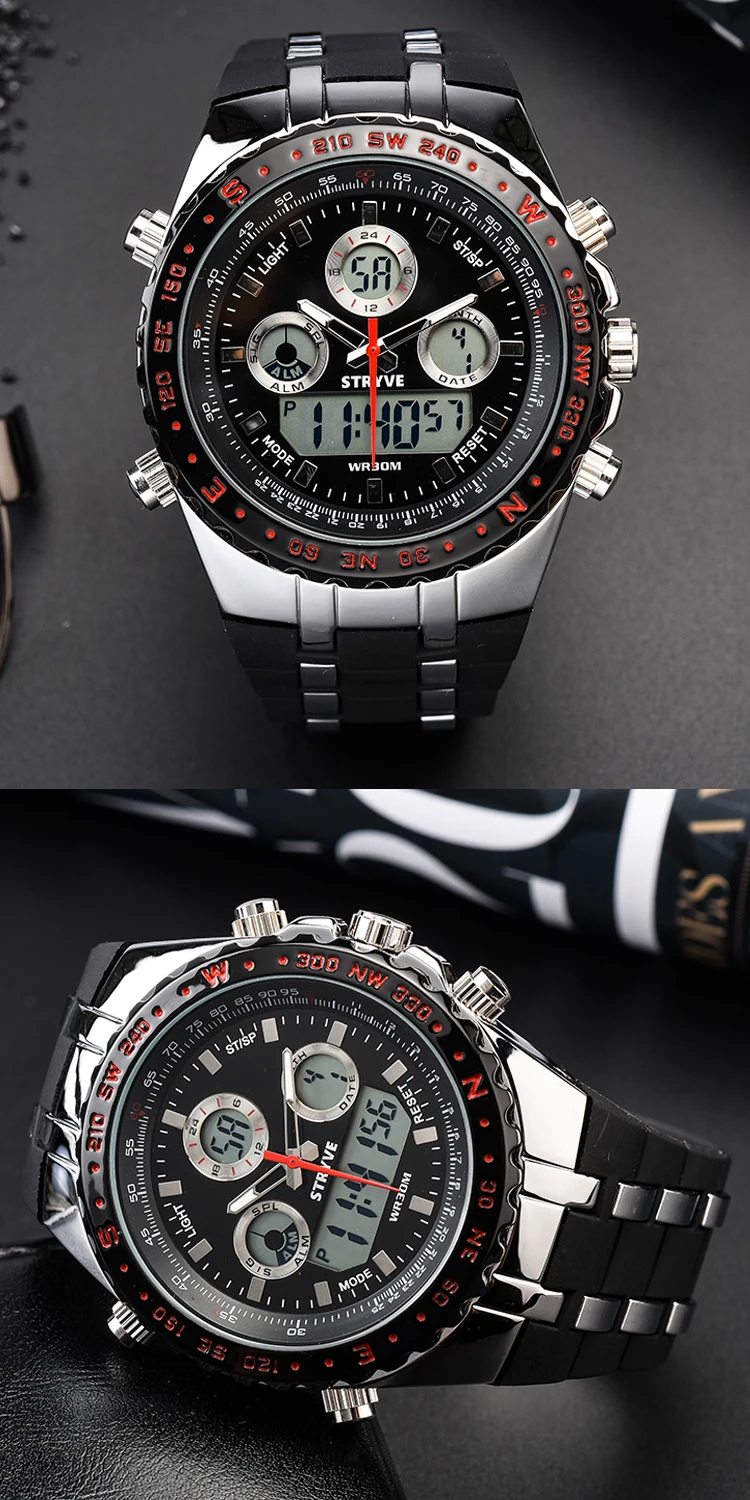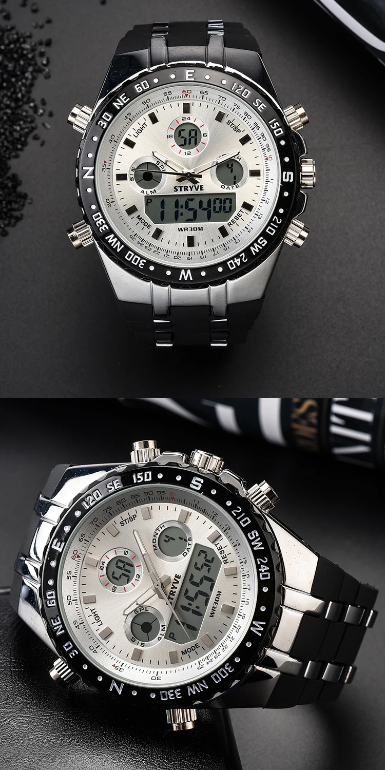 Montre Homme Multifunction Sports Watches Army Military Heavy Dial Alarm Led Analog Clock Luxury Stryve Men Digital Quartz Watch