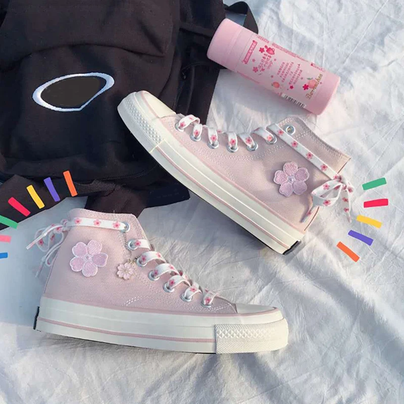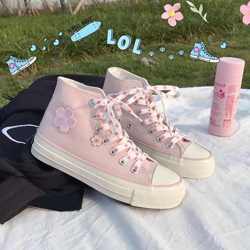 Summer Floral Women's Espadrilles Japanese Style Pink Lolita Shoes Fashion 2021 Zapatillas Mujer Casual Canvas Sneakers