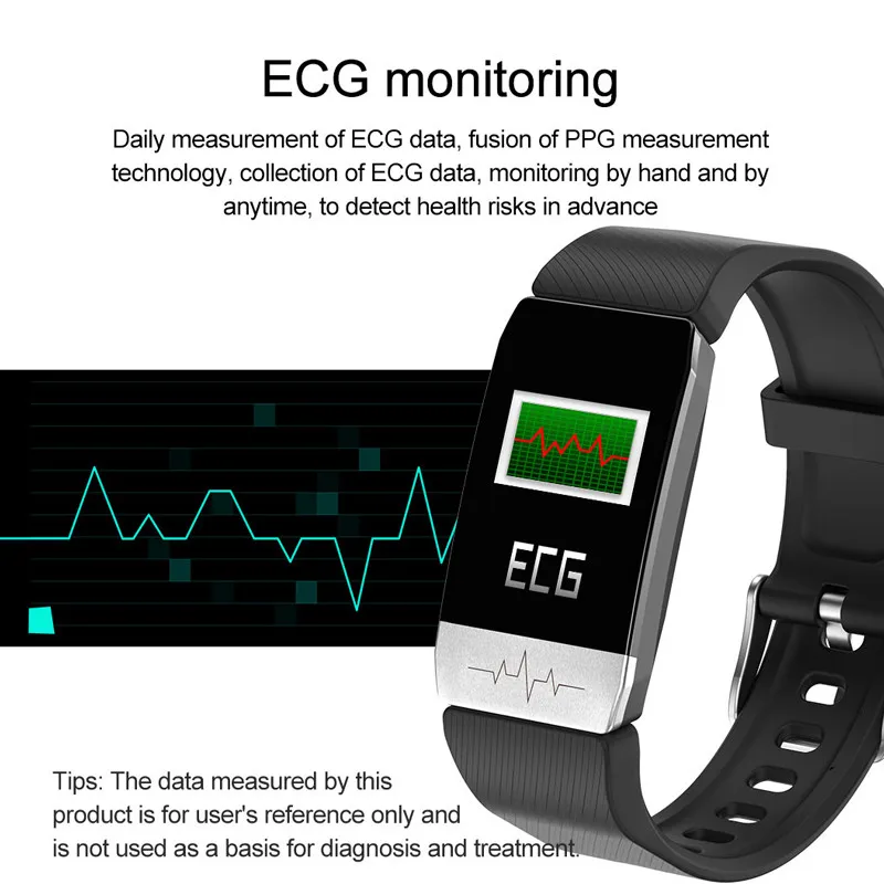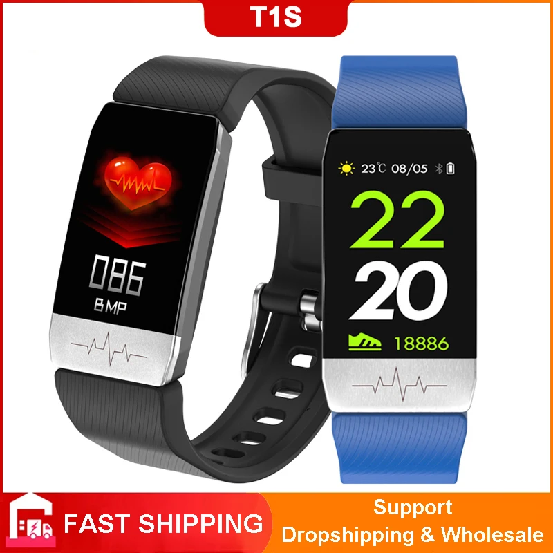 T1S Smart Watch Band With Temperature Measure ECG Heart Rate Blood Pressure Monitor Weather Forecast Drinking Remind Smartwatch