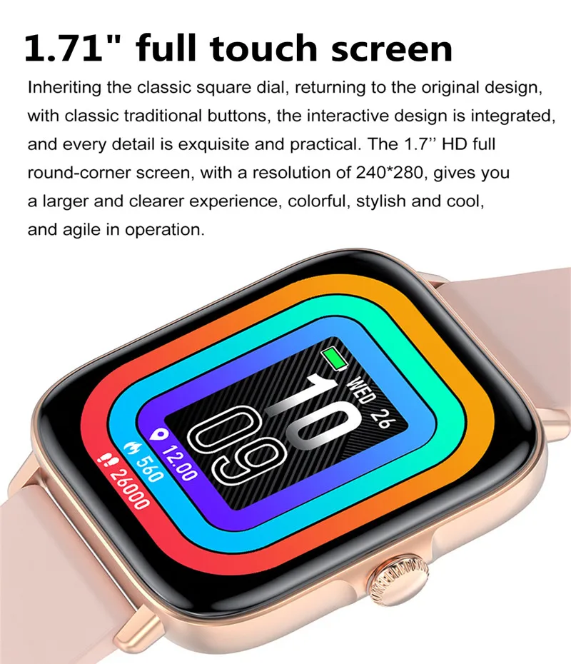 Display: 1.70 "HD full rounded corner screen