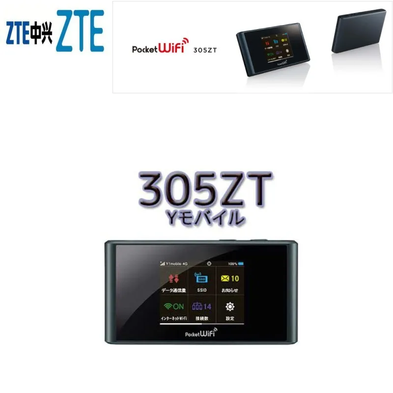 is a new 4G mobile router from Chinese manufacturer ZTE. It's available for Ymobile 4G contract. Pocket WiFi 305ZT could work on TD-LTE/FDD-LTE/WCDMA networks. The peak download speed on TD-LTE network could reach 165Mbps.
