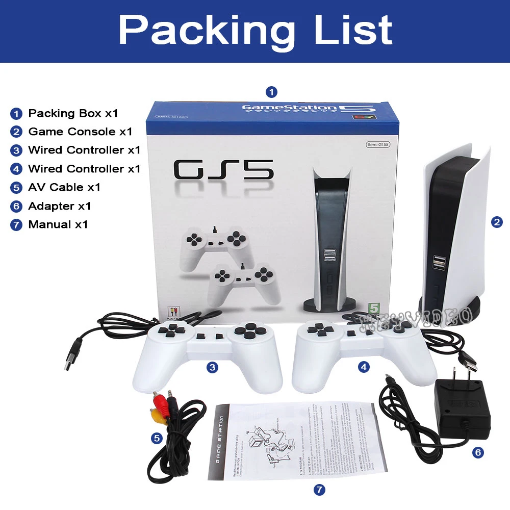 Video Game Console Retro Game Station 5 With 200 Classic Games 2 Wired Controllers TV Video Game Player AV Output
