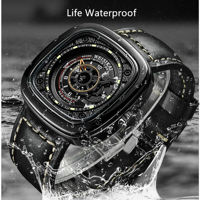 Automatic Watch Men Square Creative Automatic Mechanical Watches Luminous Waterproof Wristwatch Male Sport Clock 6010