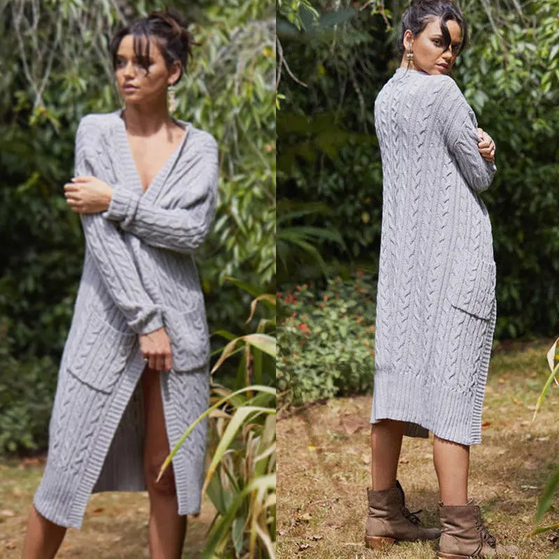 Lady girls long style knit crochet autumn coat cardigan