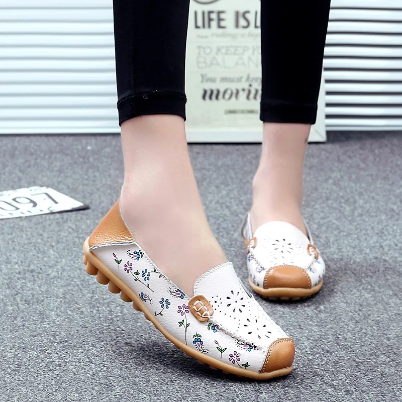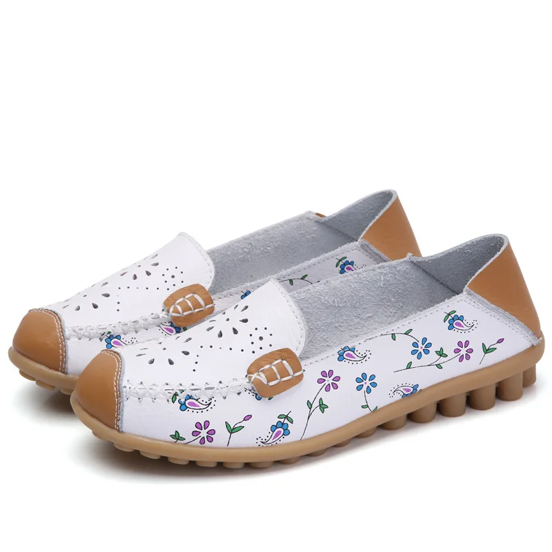Women flat shoes 2022 new fashion ballet summer flower print women shoes genuine leathe loafers ladies flats shoes woman