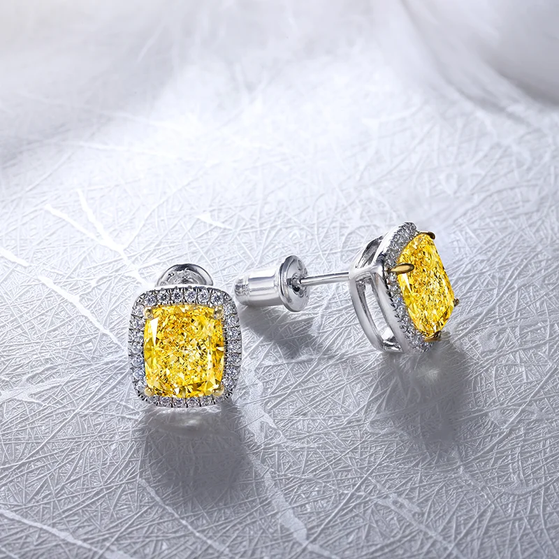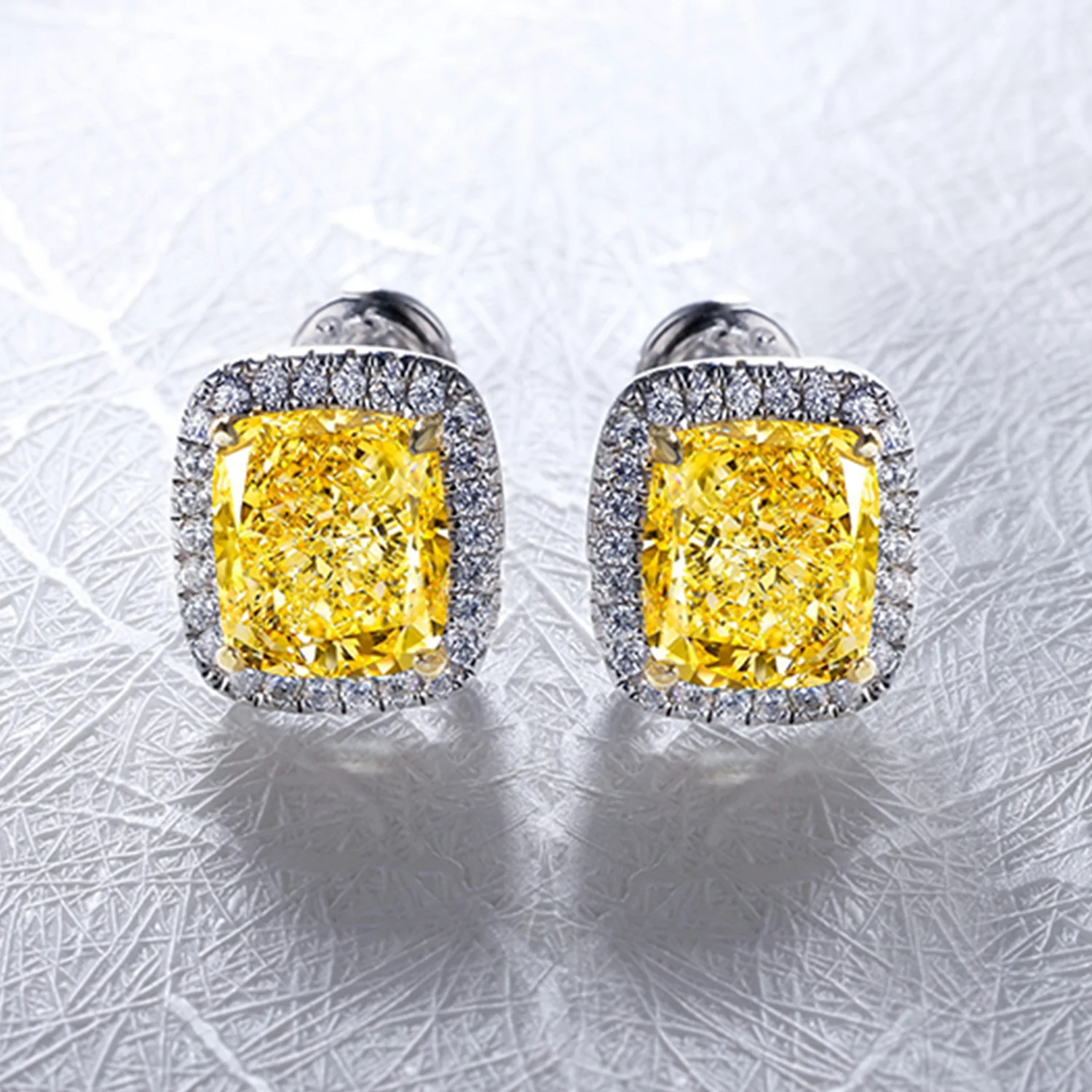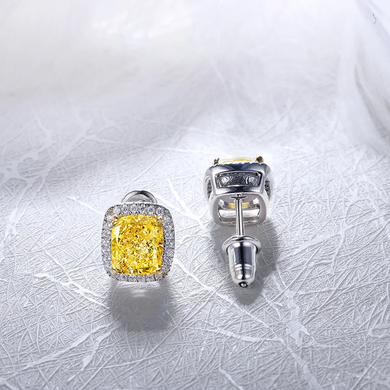 Zhanhao Silver Jewelry Sparkle Luxury Yellow Diamond Cushion Shape Pink White Gemstones Pendant Necklace