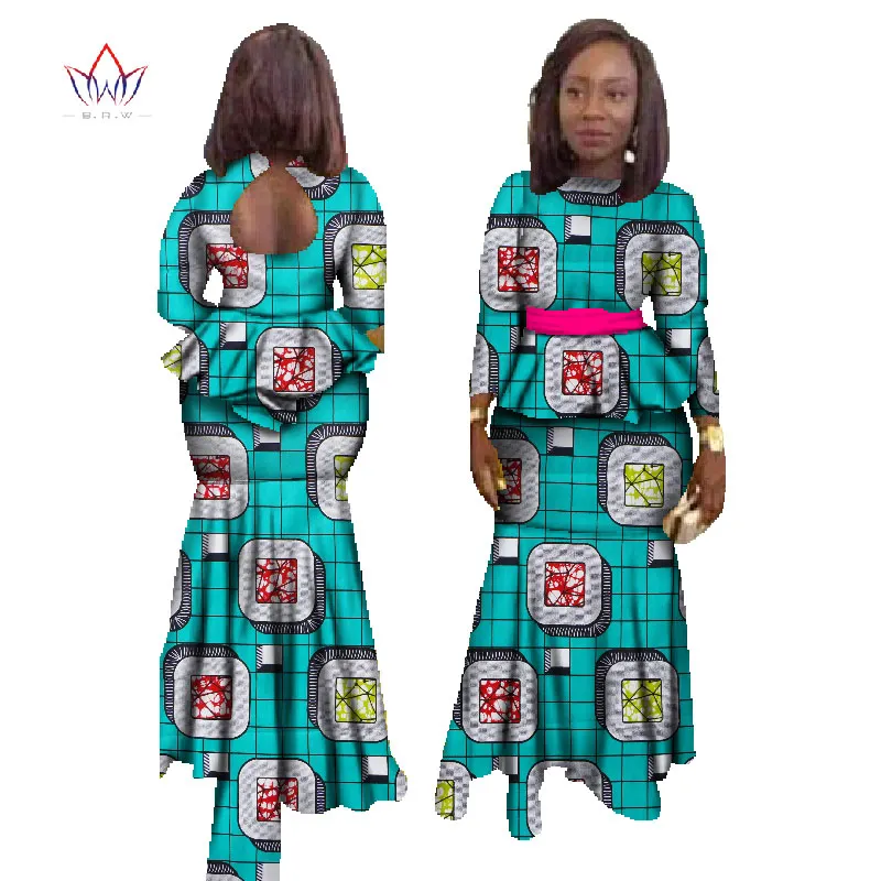 2 Piece Sets Womens Outfits Fashion Dashiki Cotton Top & Skirt African Clothes Bazin Plus Size Lady Clothing for Party WY6729