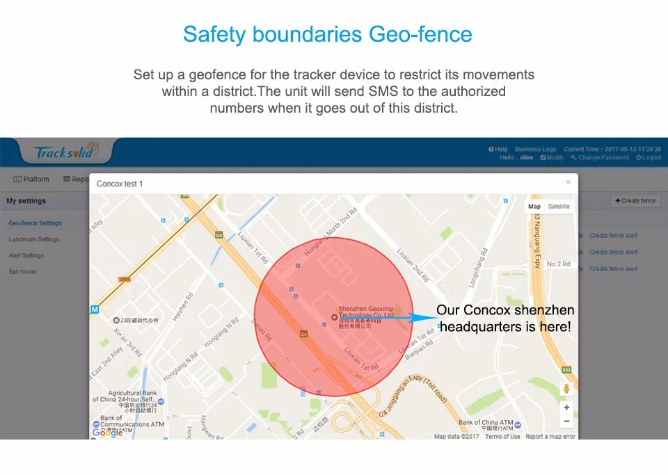 The geo-fence alarm only works in tracking mode, when the target enter/exist the preset geo-fence area, the device will send alarm to the preset SOS numbers.